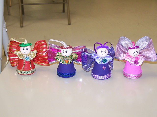 Aren’t they cute! I made the red one, Grace made the purple, Julie’s is next and we all worked on the pink one. It is for Jess. I think they are adorable. They are supposed to be ornaments but we don’t have our tree up yet. As of now, they are brightening up our dining room window sill.