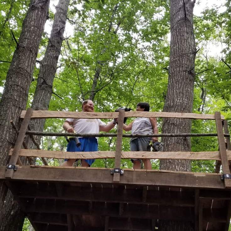 The steps and the rails are from trees we cut off Dave and Jess’s property. I really like how they turned out. Very strong.