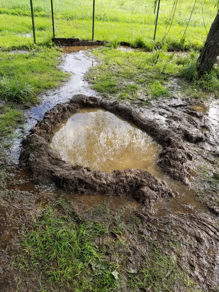 Grace helped us with some of the projects but after lunch she had her own project to work on. She dug this ditch and make this cute little pond in her duck lot.