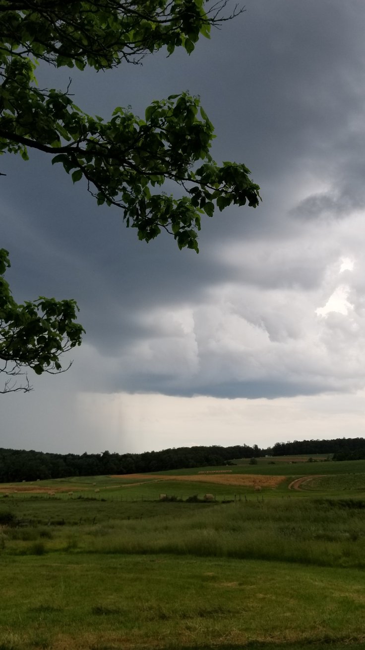 Things have been kinda dry here but we did get some much needed rain yesterday. In the left of the picture, you can see the rain coming toward us. I am so glad I didn’t have to water the garden.
