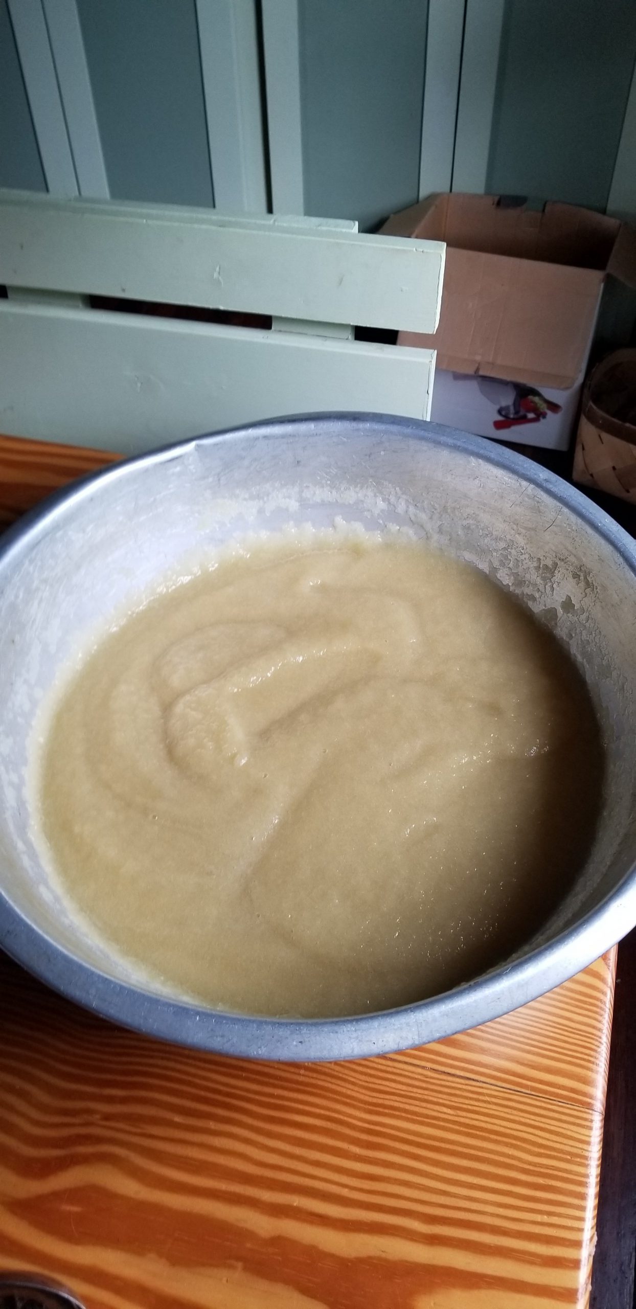 I purchased about a half bushel of them and made applesauce. The metal dishpan you see here belonged to my mom. It makes me happy to use her things.