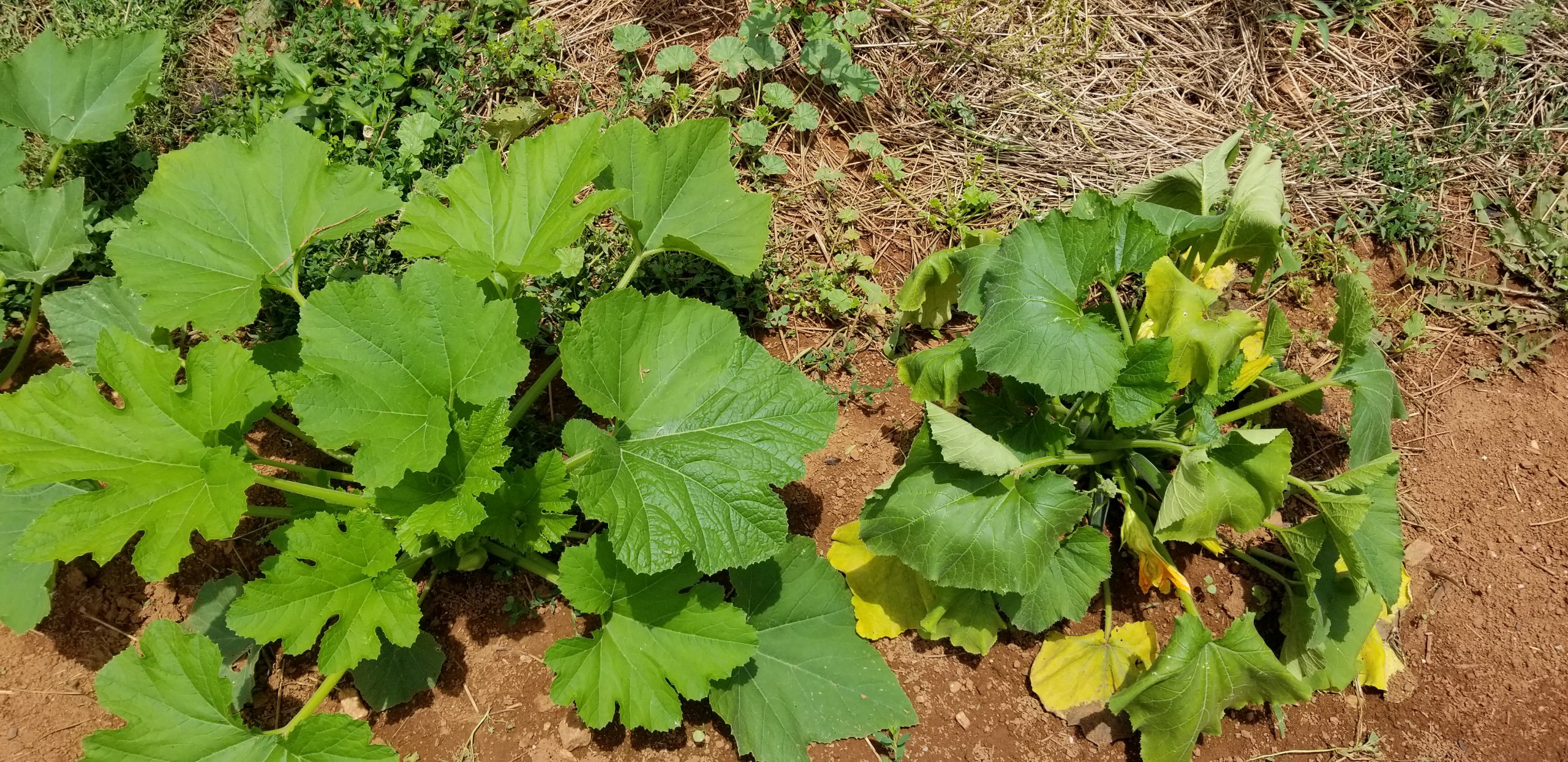 The squash on the right however is not doing so good. I ended up pulling it up yesterday and throwing it in the field so hopefully it won’t spread to the other plants. I sprayed everything this morning with neem oil. I have never used it before but so many of the gardeners I watch use it all the time. Hopefully it will help.