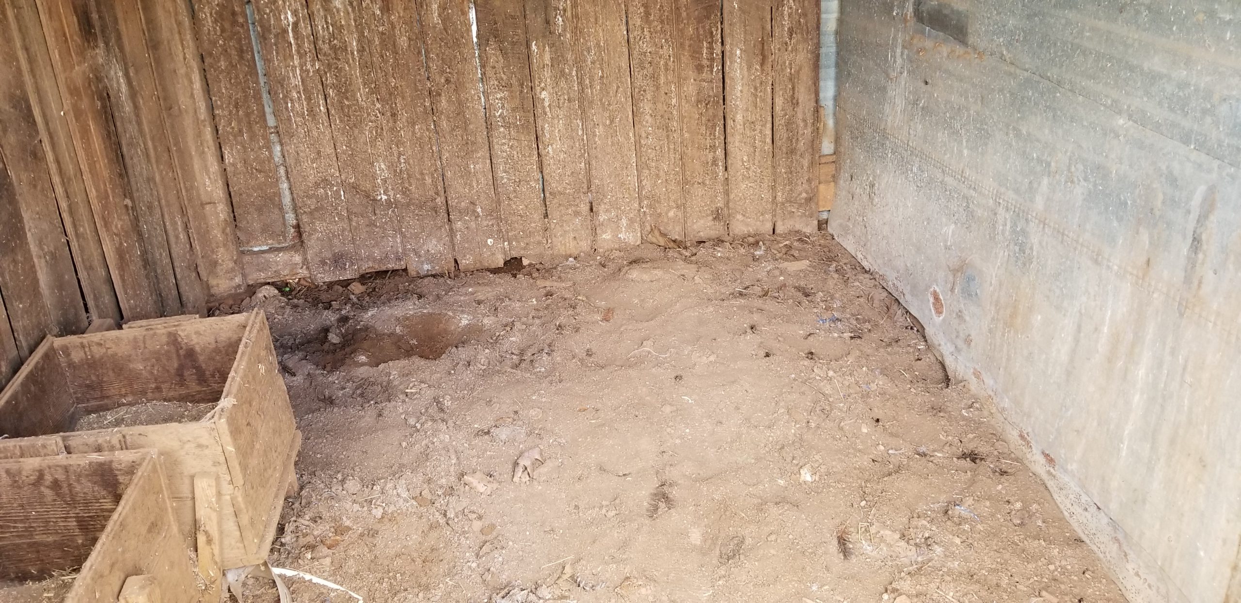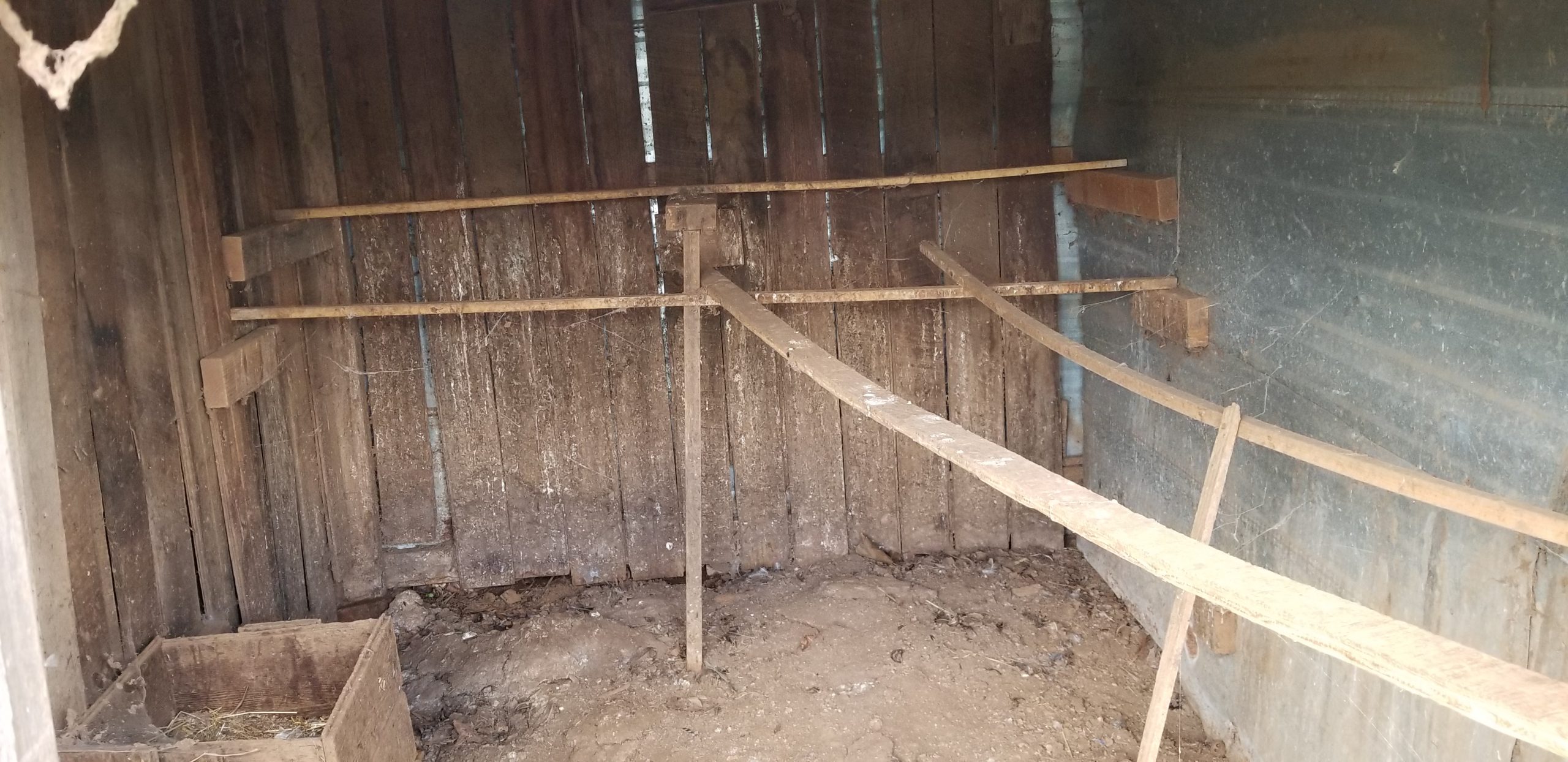 We removed the old roosts. We are changing the inside a little as we want to have the ducks and the chickens in here together at night. Also the cage will be in here while they are little. We want to put wire around the bottom and make sure there are no gaps anywhere where critters can get in.