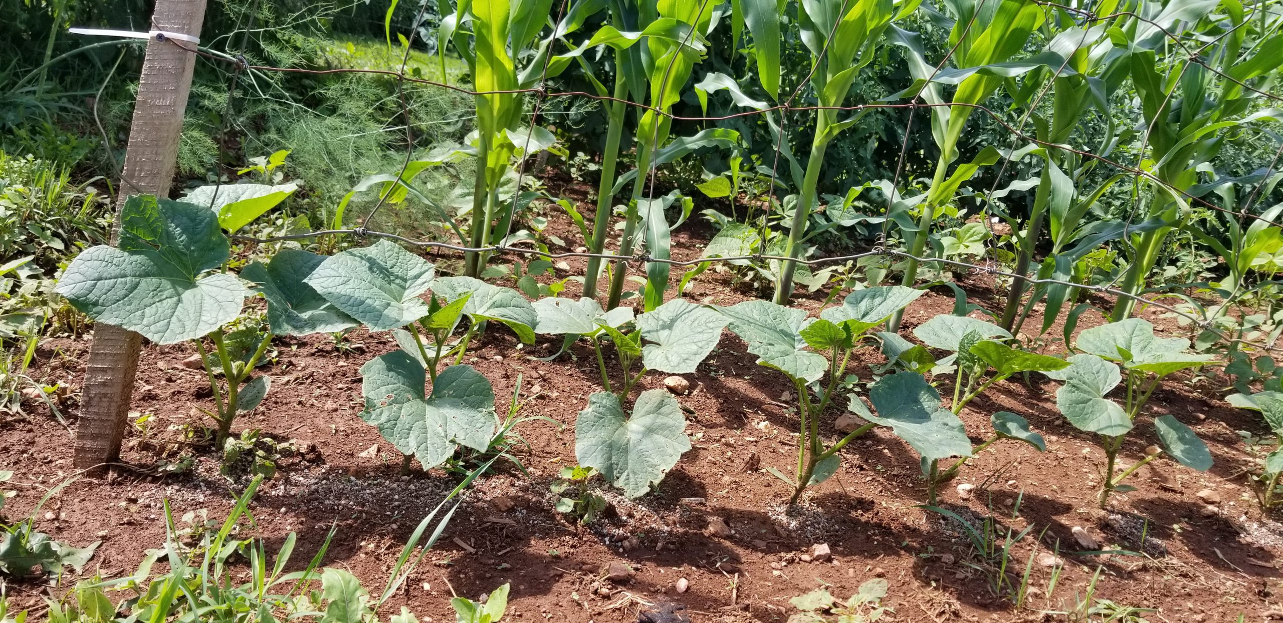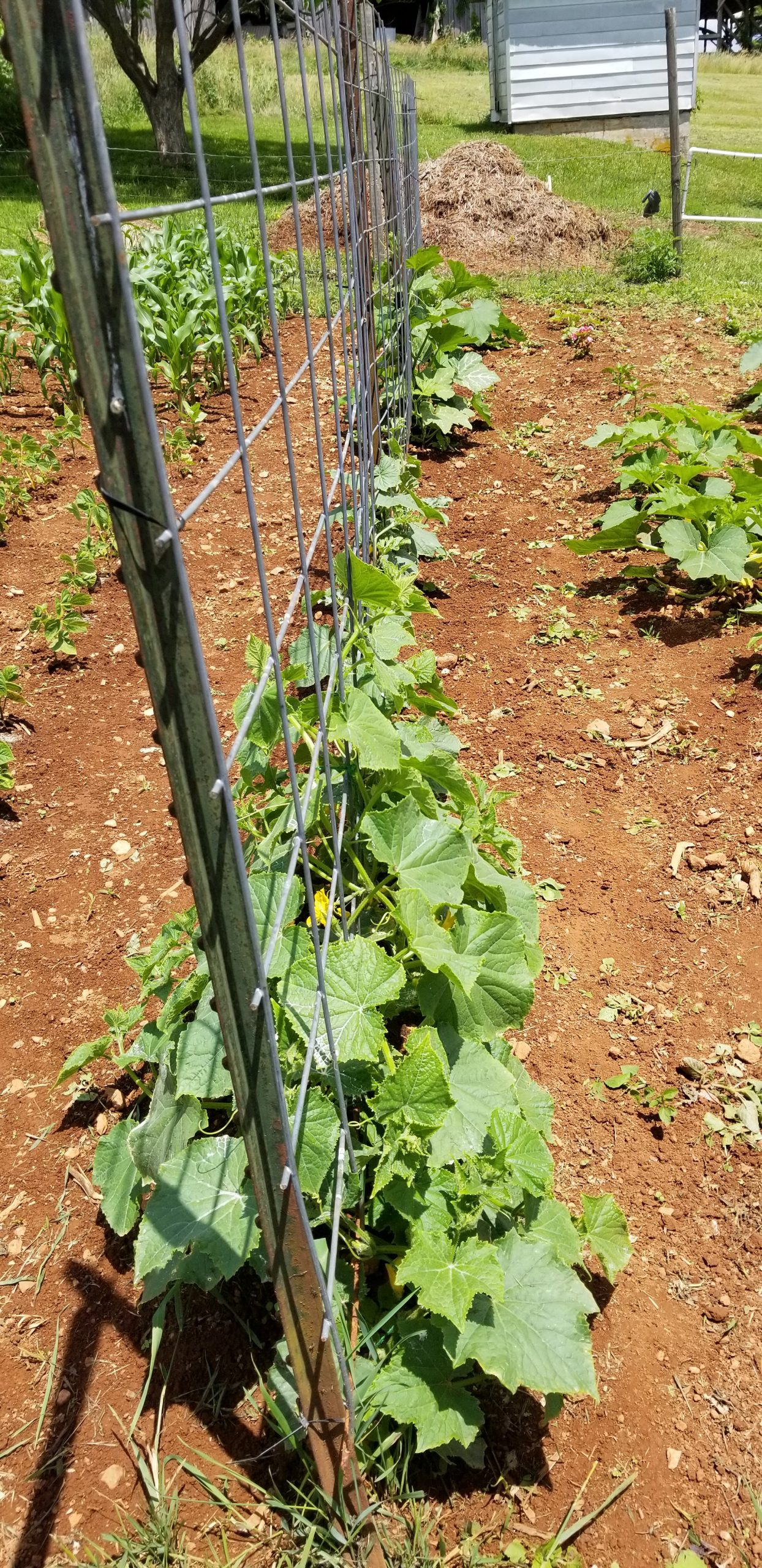 Everything is growing good in the garden. This is our cucumber row. Some of them are blooming! We are definitely looking forward to fresh cucumbers. Last year we probably didn’t get ten cucumbers. Hopefully we will harvest lots of them this year.