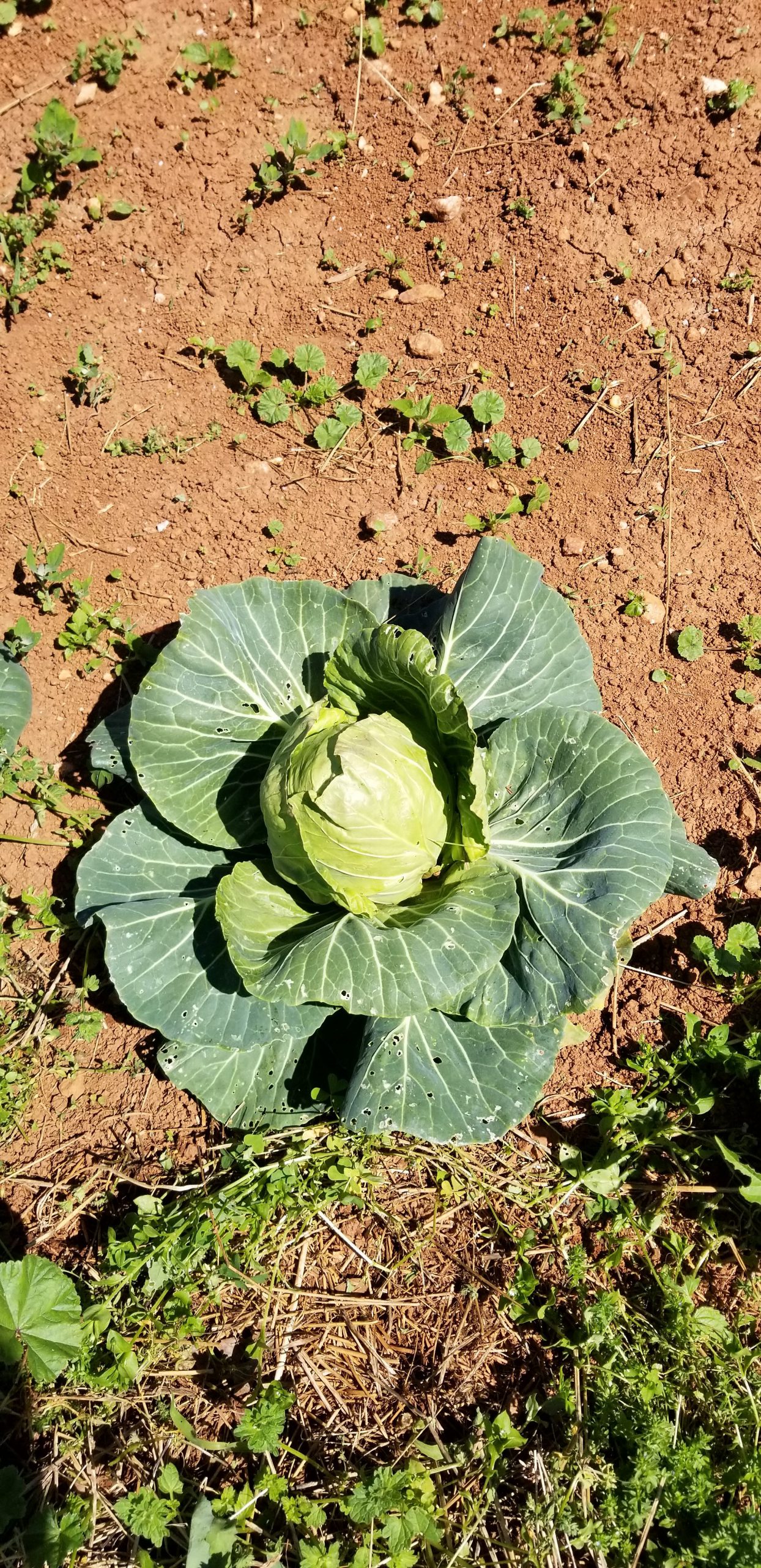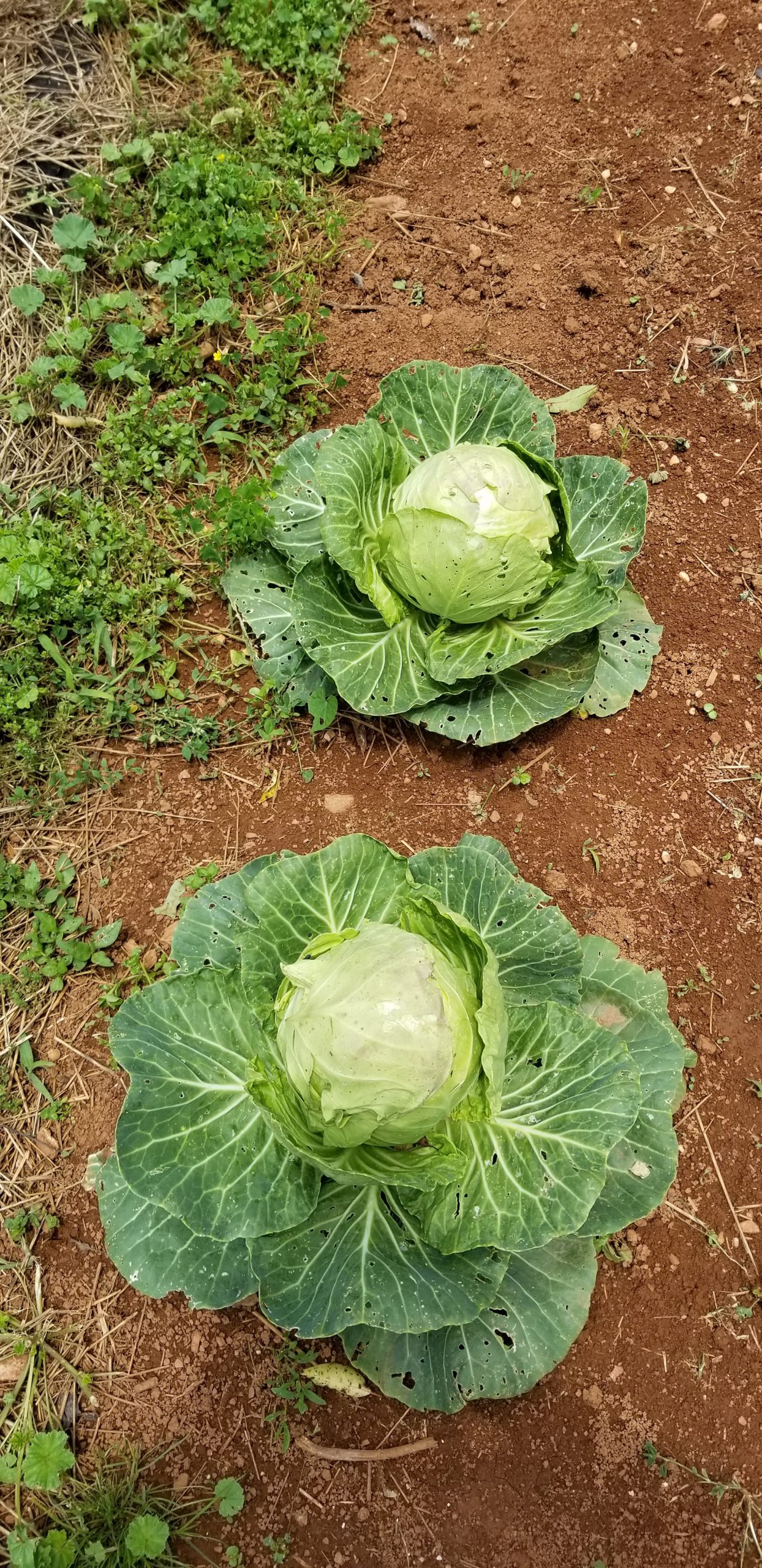 We harvested our first cabbage this week. These are small cabbages. I can’t remember the name but they are supposed to be small and they mature in a shorter time. I chose these so that hopefully we can eat the cabbage before the bugs and slugs get to them.
