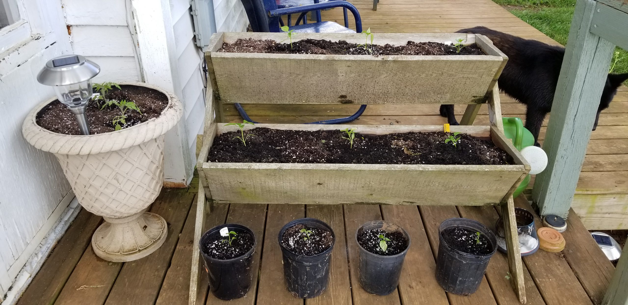 The peppers finally seem to be growing.