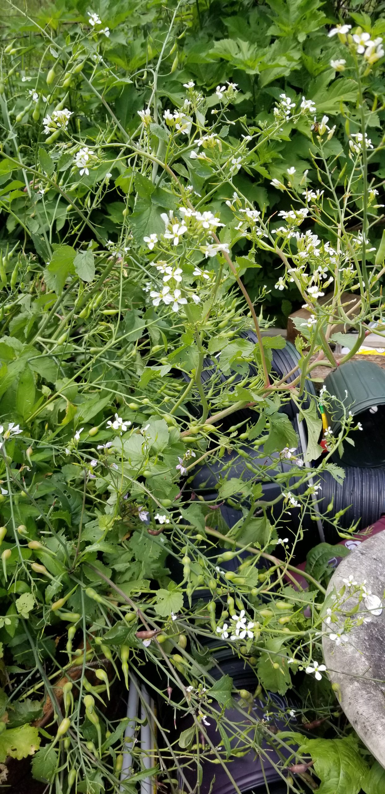 The radishes have all gone to seed. I think they make beautiful flowers and did you know you can eat the seed pods. They are delicious!
