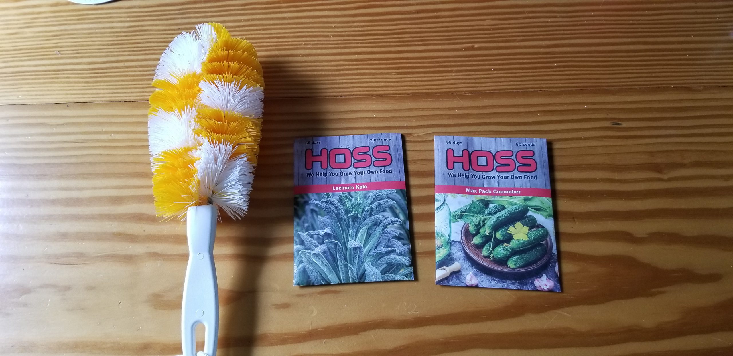 I am trying out a new seed company. I have been watching a lot of their youtube videos and like them a lot. The brush on the left is a corn silking brush. I used it last night and really liked it. It made silking the corn so much easier.