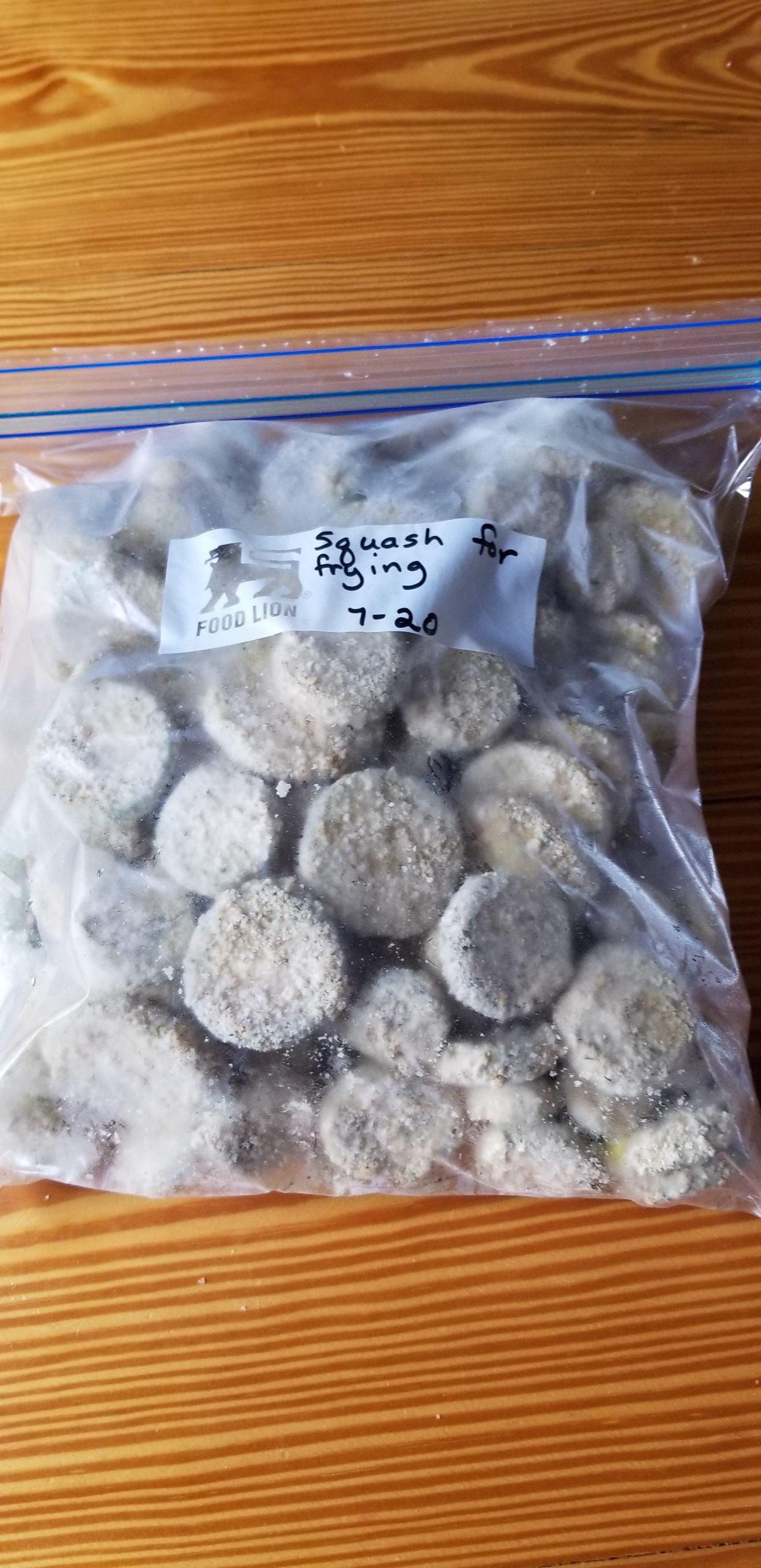 This method, however, is the one I am most excited about. I breaded and individually froze three trays for frying. This is our favorite way to eat squash. I wasn’t sure how it would be so I fried some yesterday evening for supper after it had been in the freezer about 3 hours. It was delicious! To be honest, we couldn’t tell any difference in it and fresh squash.