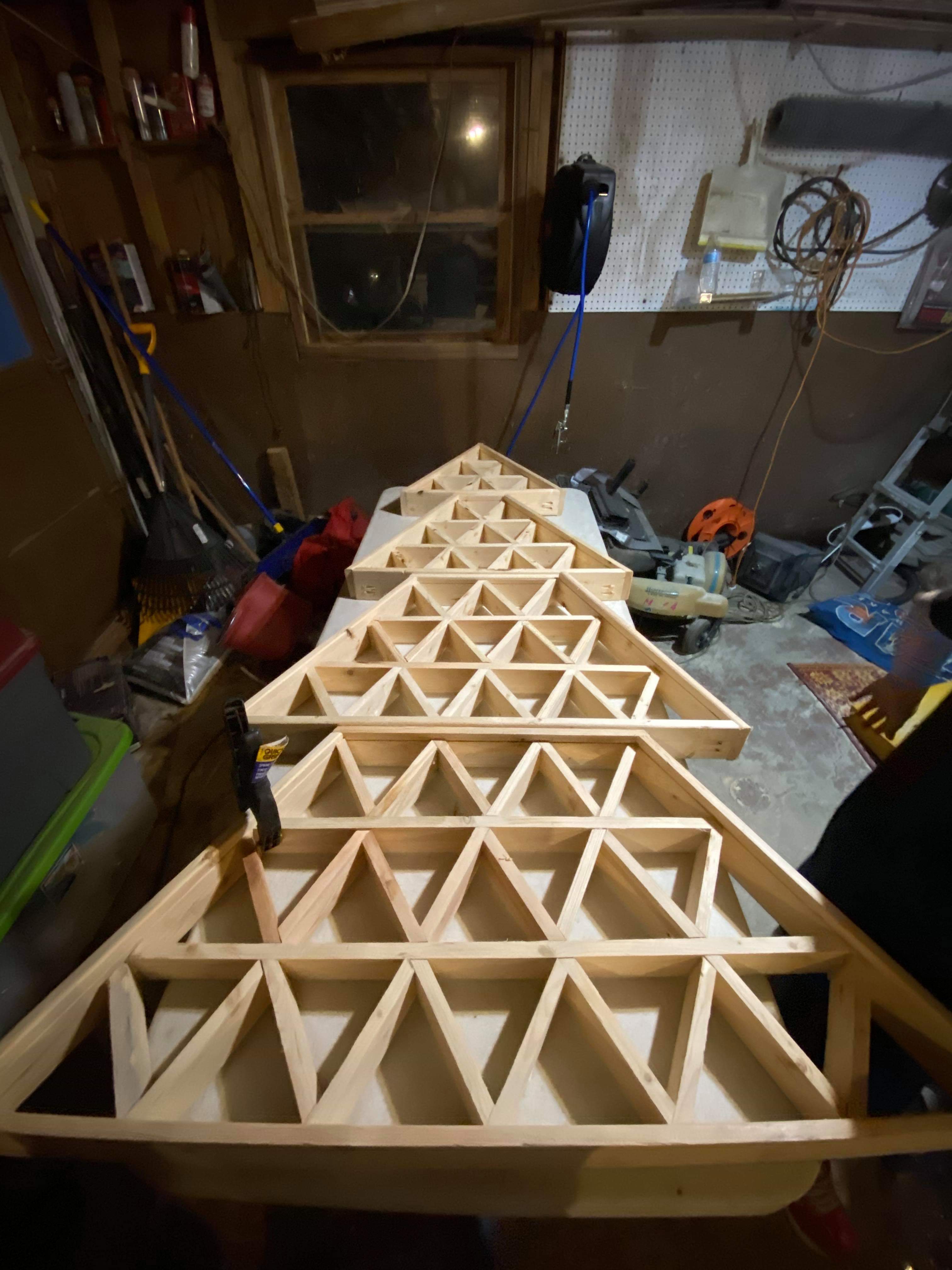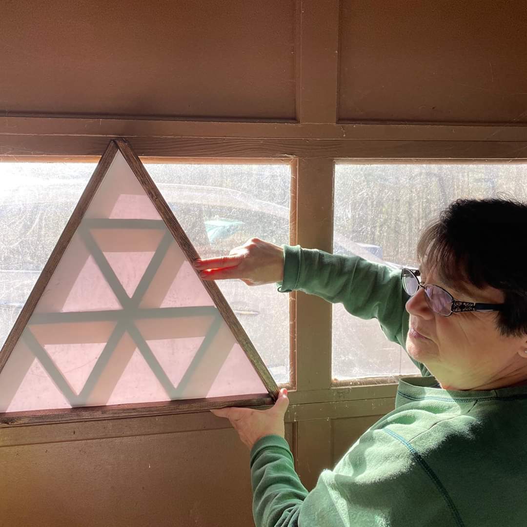 Each big triangle is filled with smaller triangles. Each small triangle will have different color lights inside it.