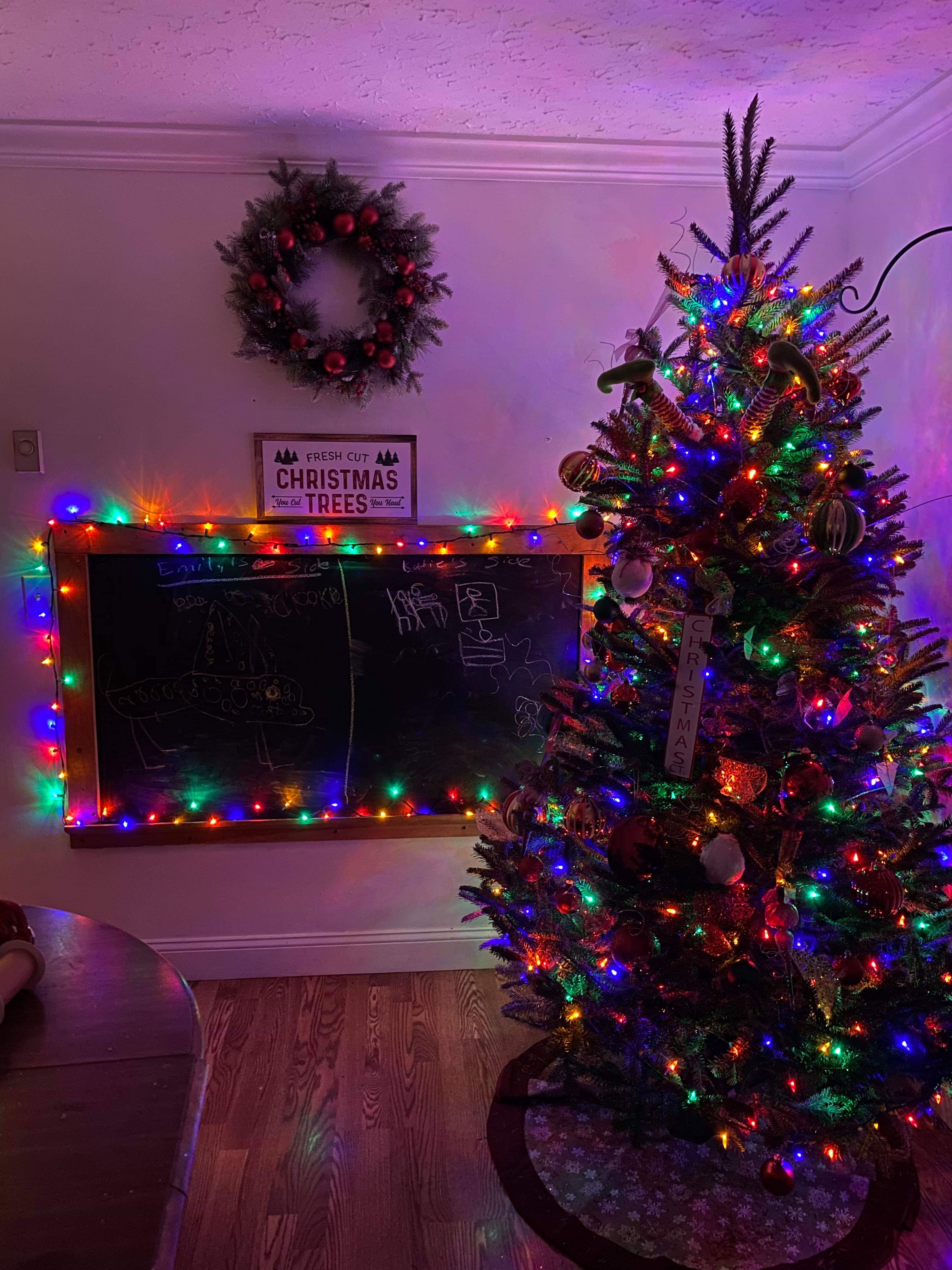 This is their tree decorated and ready to go. I love how they decorated the school chalkboard as well.