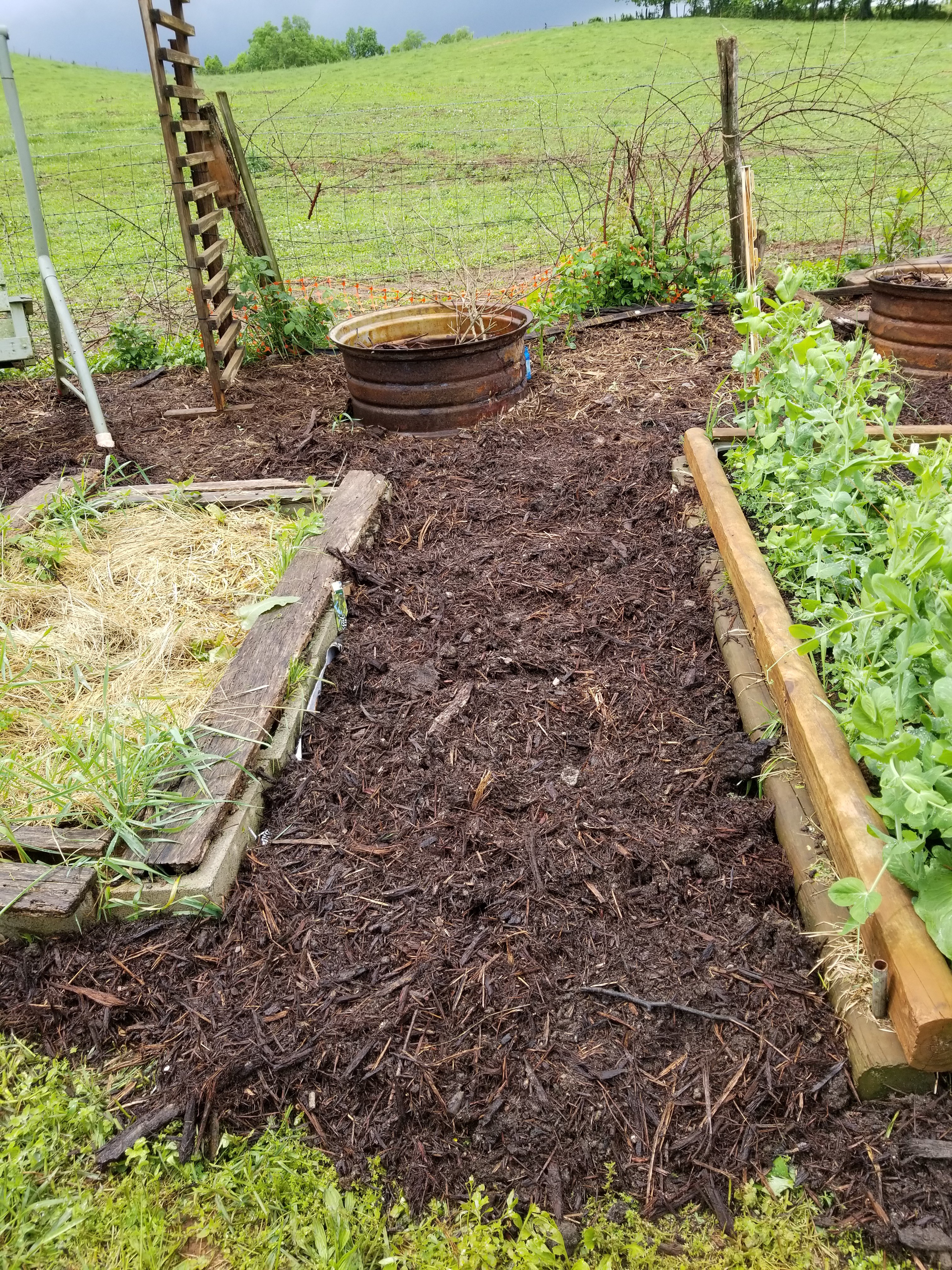 Vicki came over yesterday and helped me put down mulch in the garden.