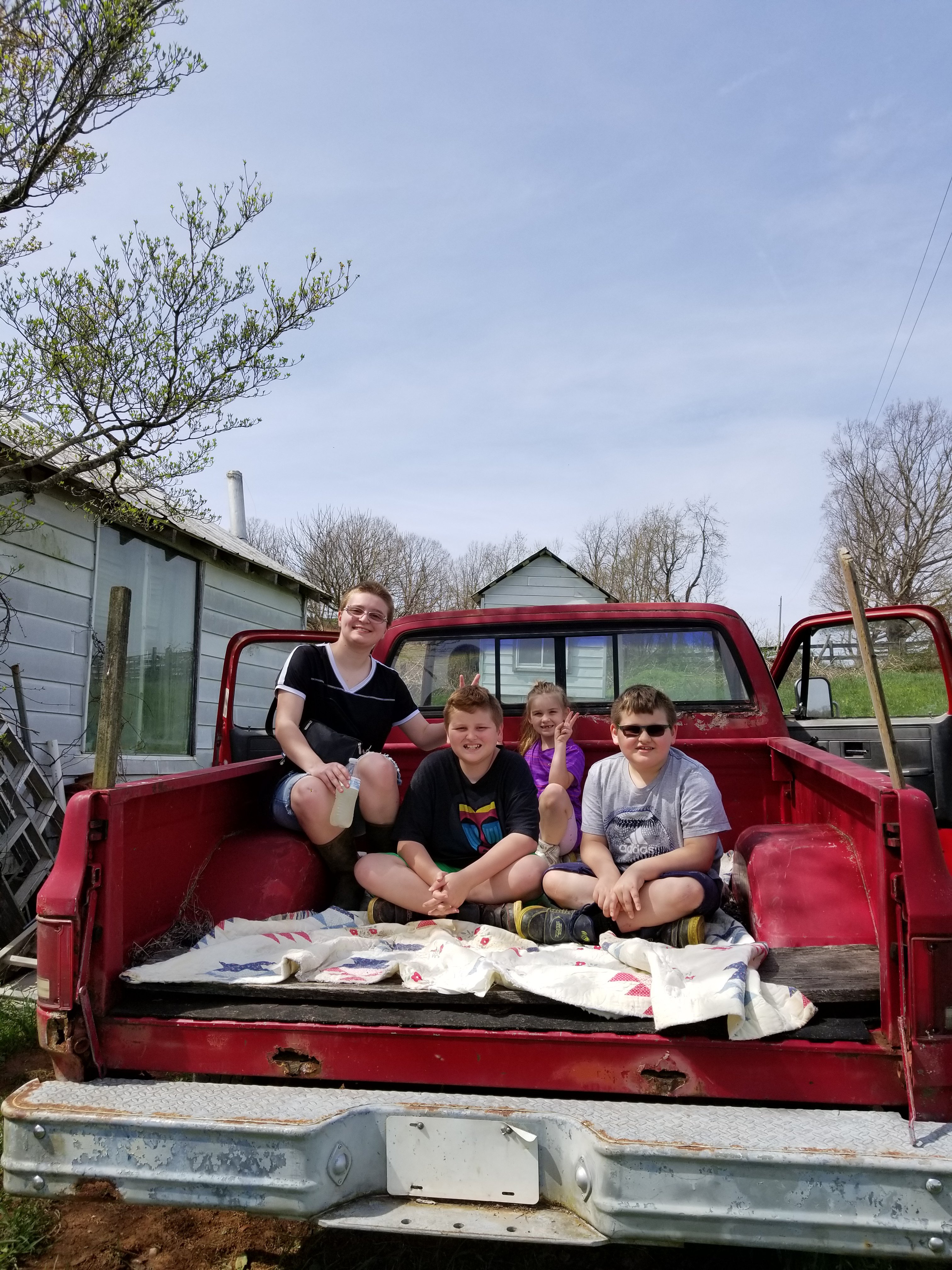 The kids came over last week for a little while and we got to take a ride in the bumpy truck.