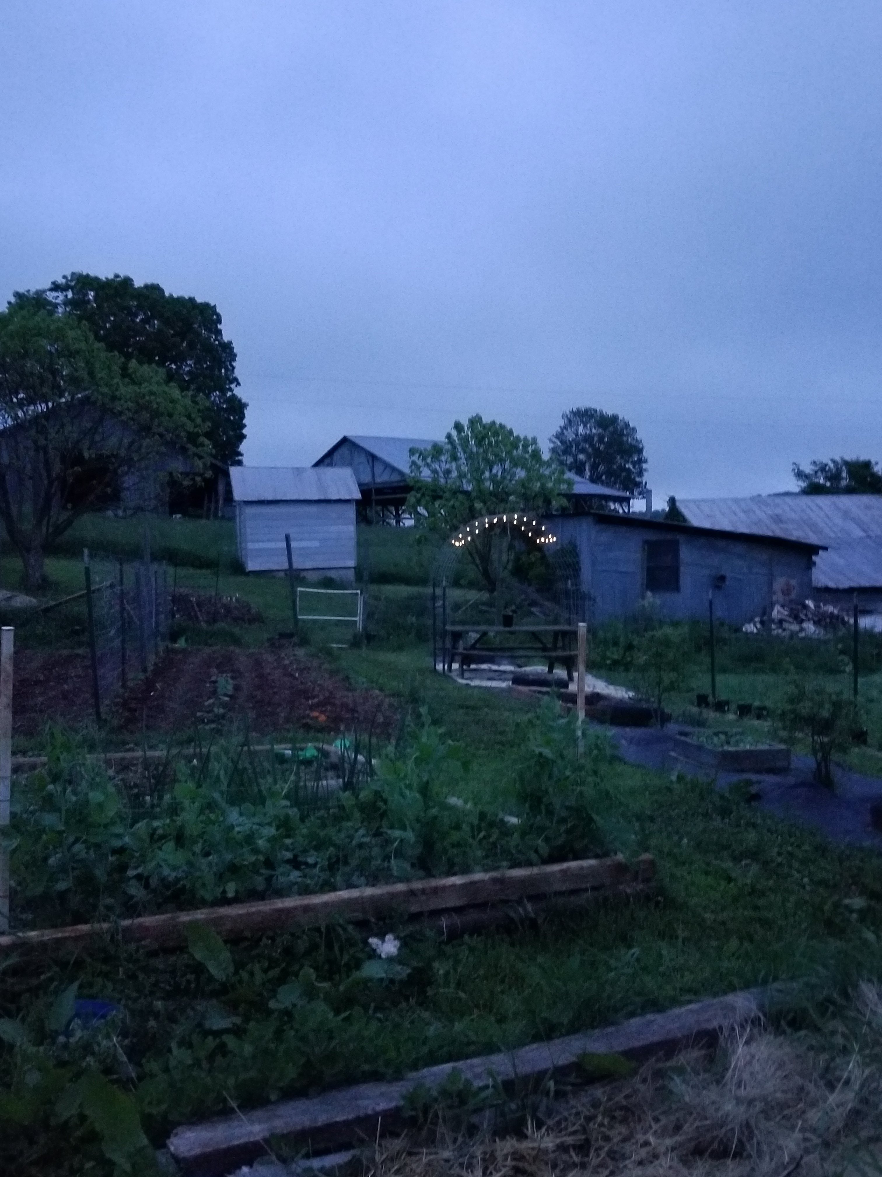 The picture doesn’t show it really well but if you look close you can see the solar lights on the arched trellis. I think they look really pretty.