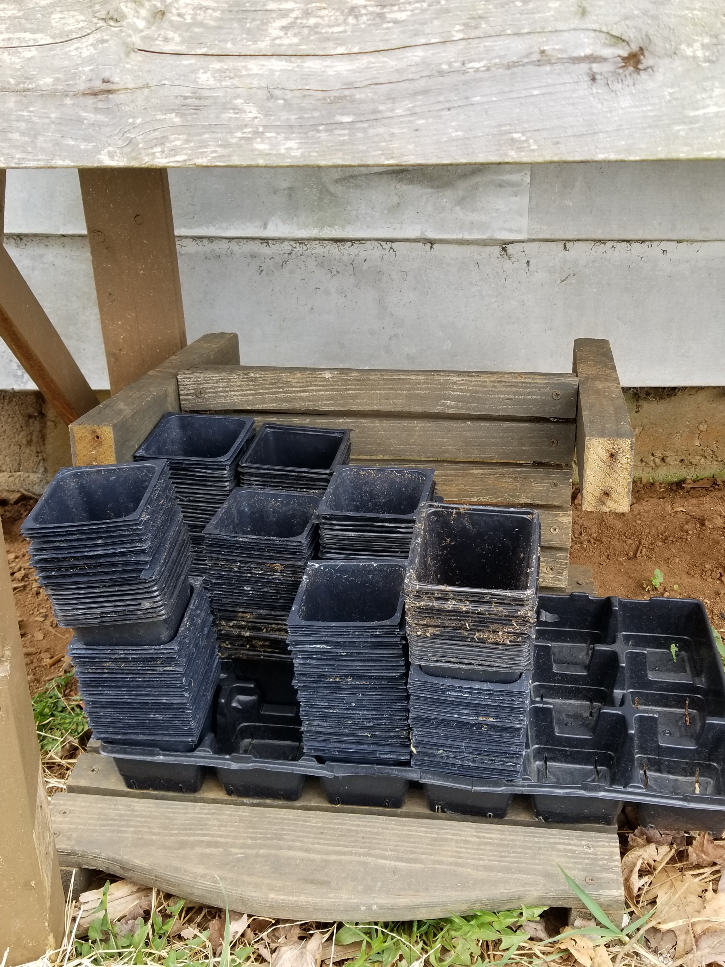 I went to our local greenhouse and was gifted with all these pots. This saved me a ton of money as it was time to start potting up the tomatoes and peppers that I started from seed.