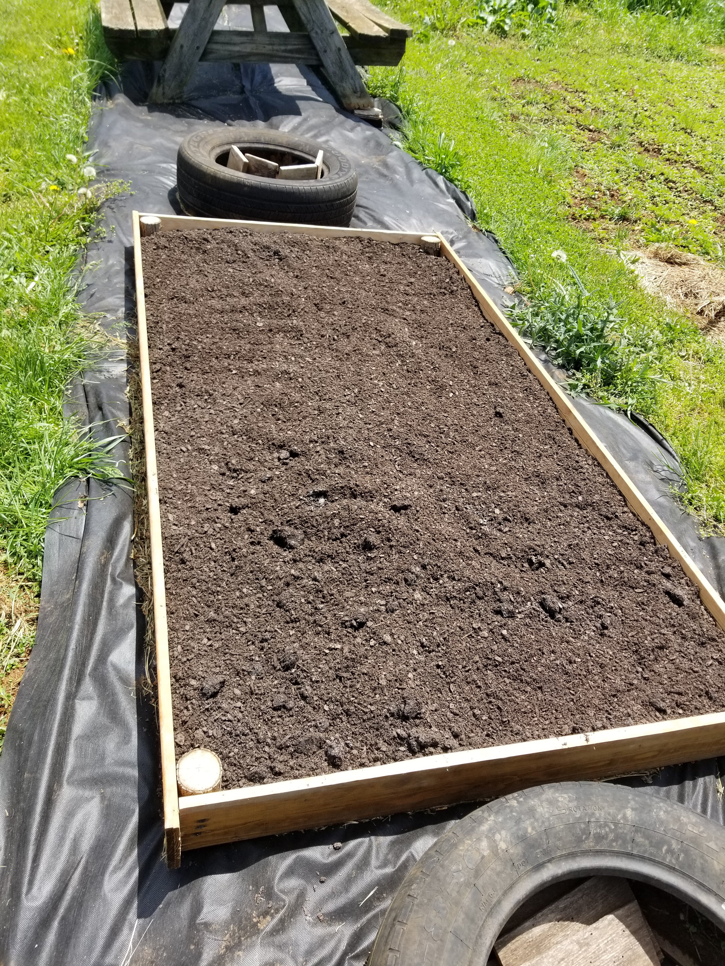 I spent some time last week working on garden things. I filled up these raised beds with dirt.