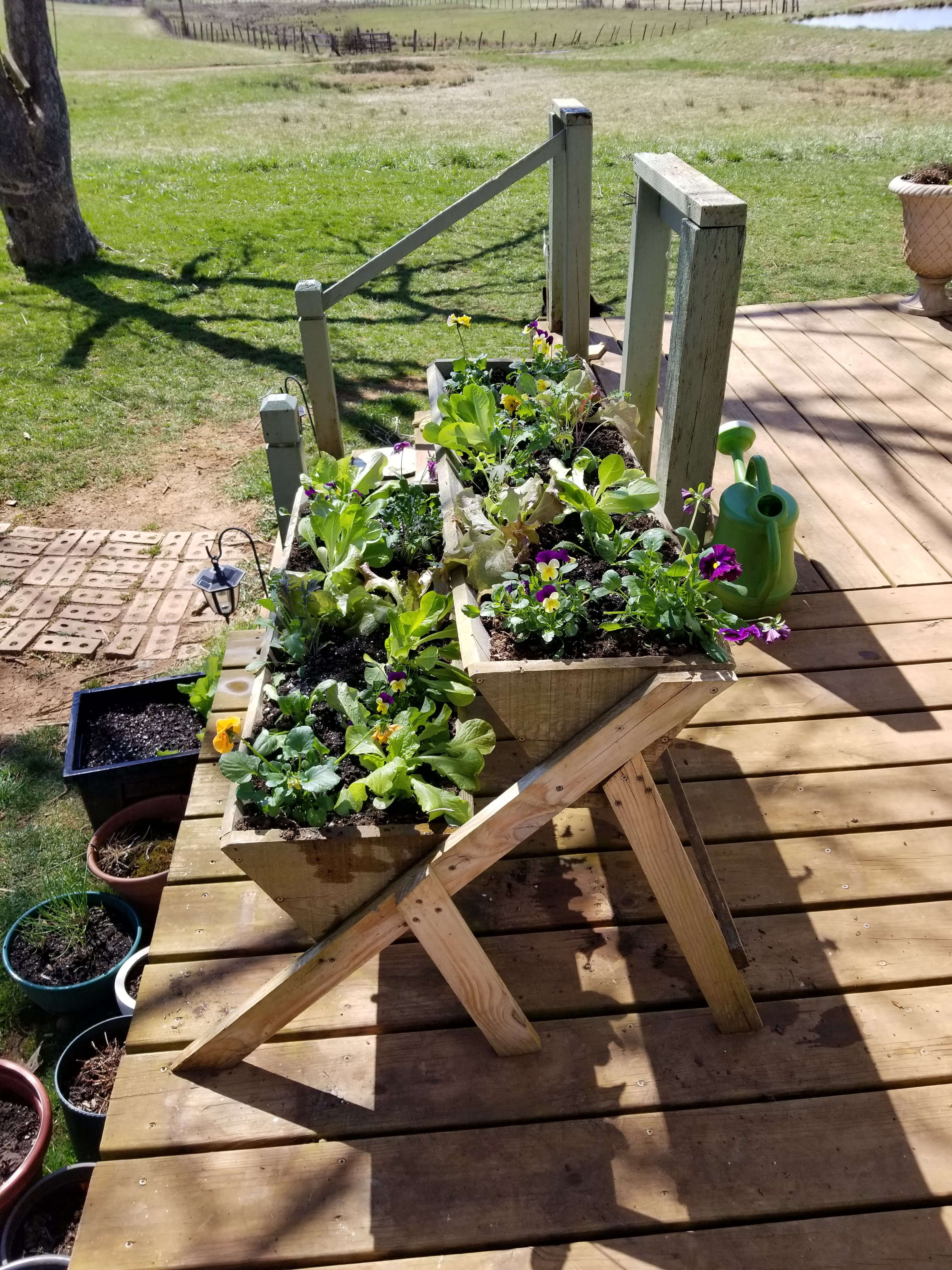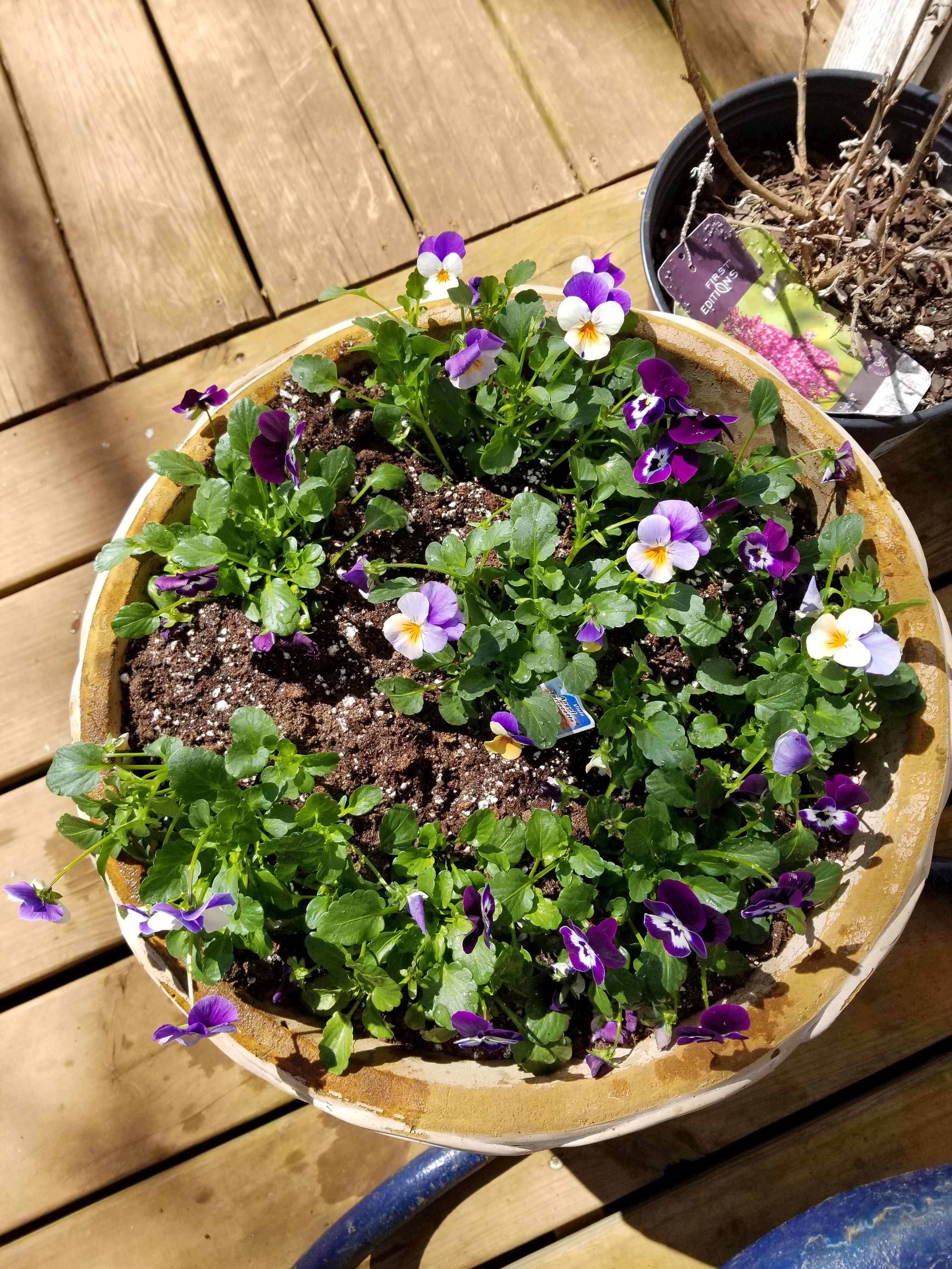 And filled this planter. It has some spring greens and flowers in it.