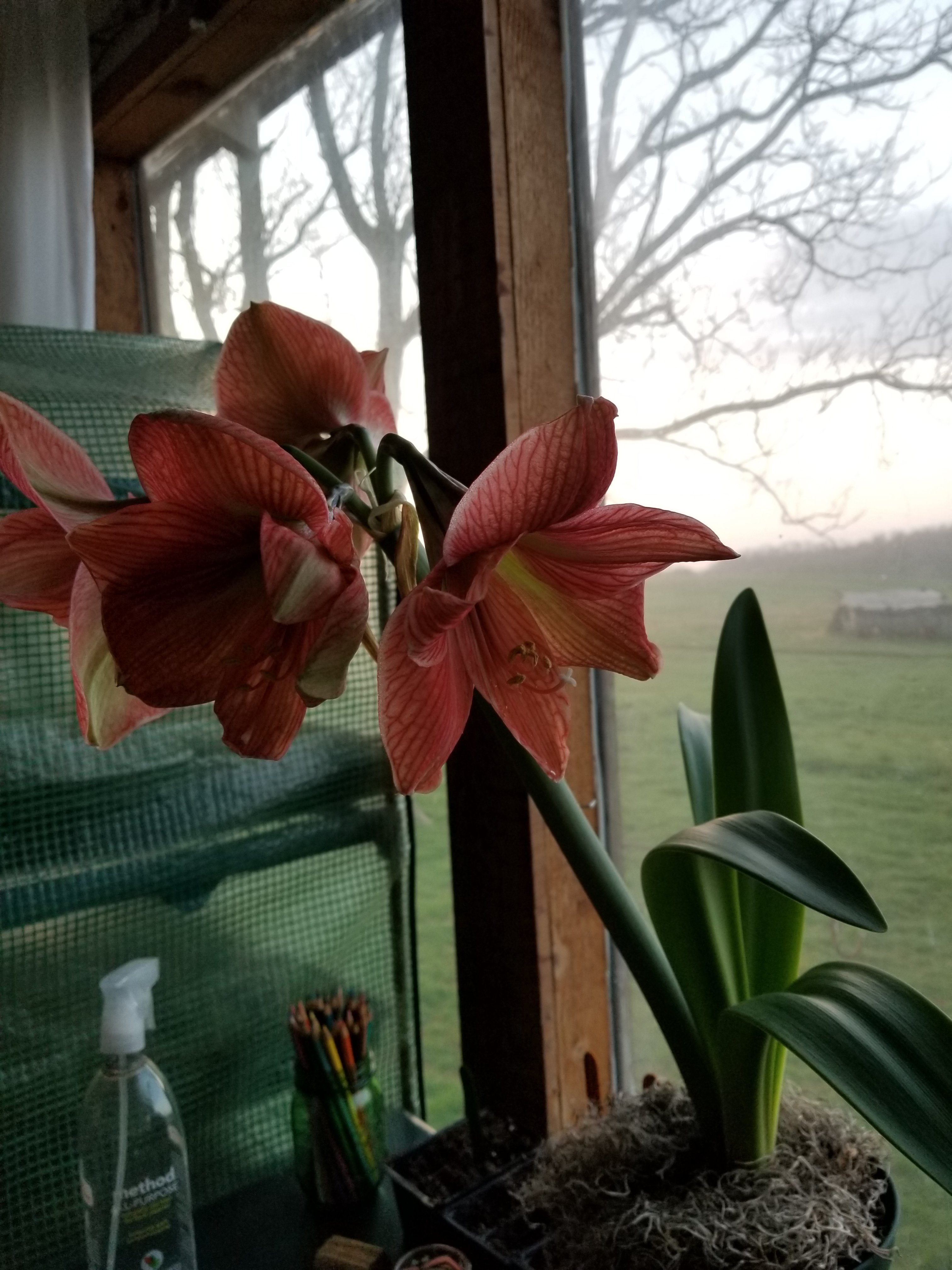 My amaryllis is blooming beautifully. Such a cheerful sight!