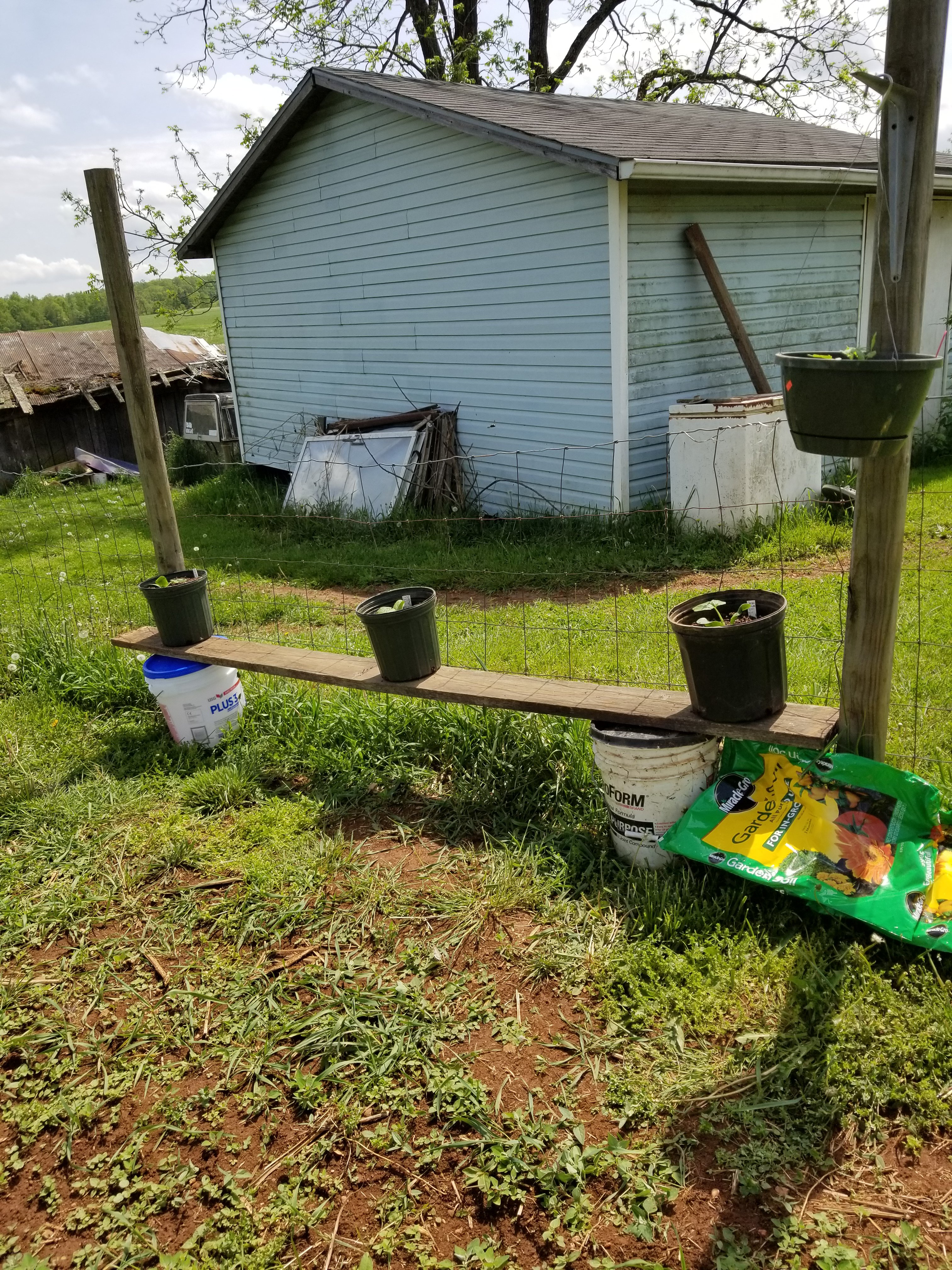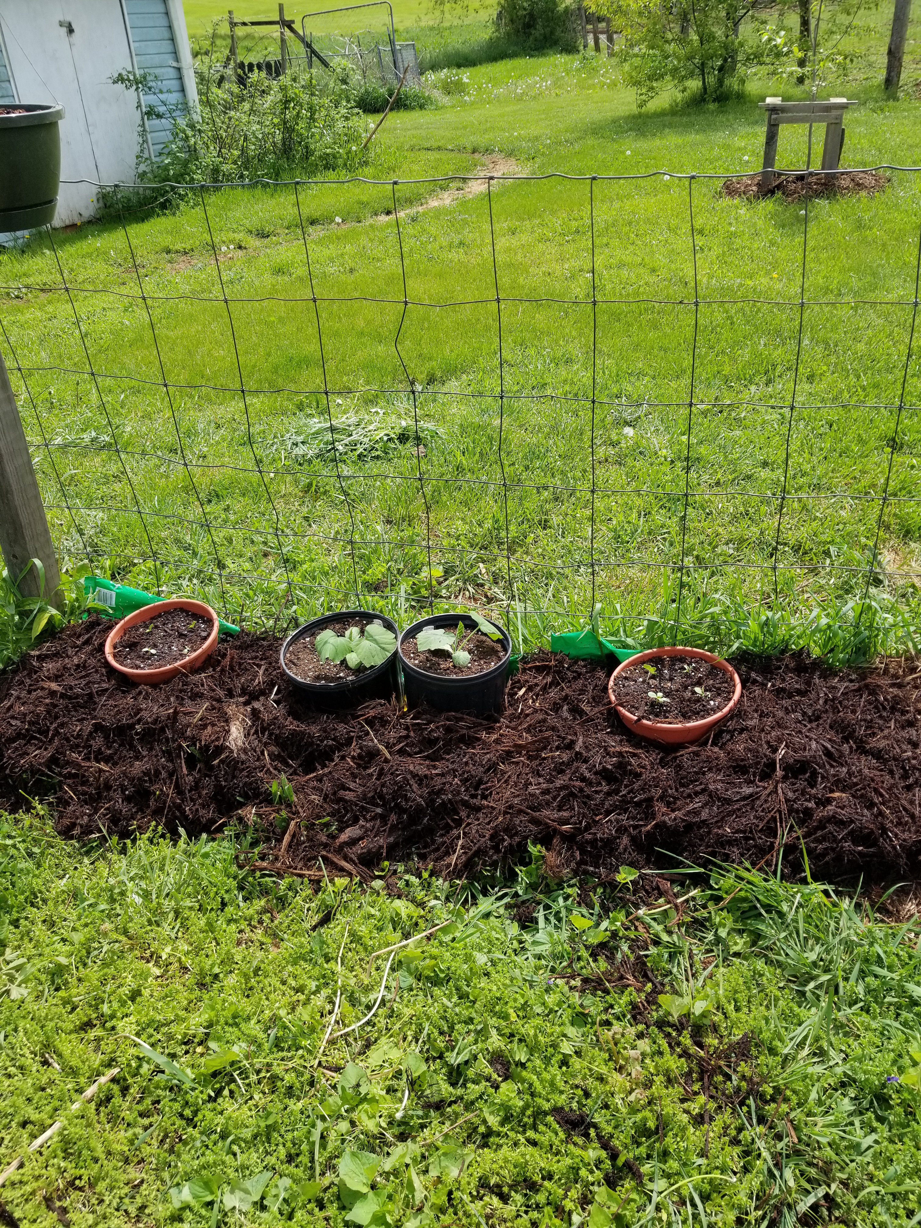 I have also been filling up some pots with different things. The middle pots are a new squash I am trying and the outer pots are flowers. I think they will look pretty.
