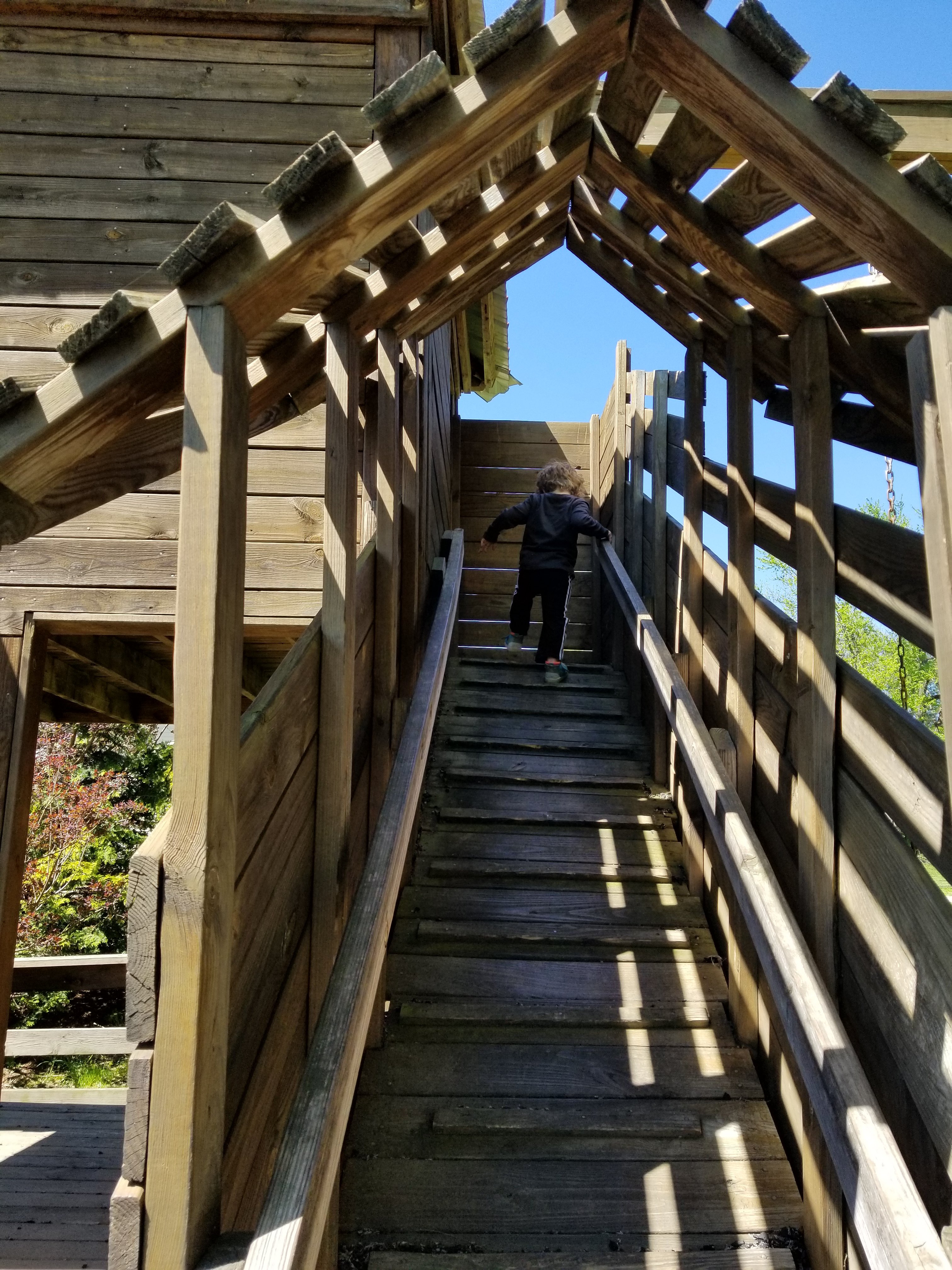 Going up to the big slide all by himself!