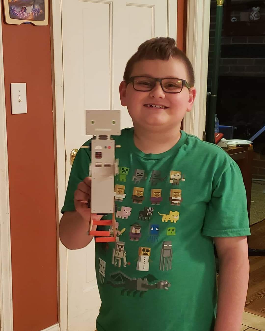 Sam made a robot with his Tinker crate. His name is Walker. They are both loving the kits they get every month.