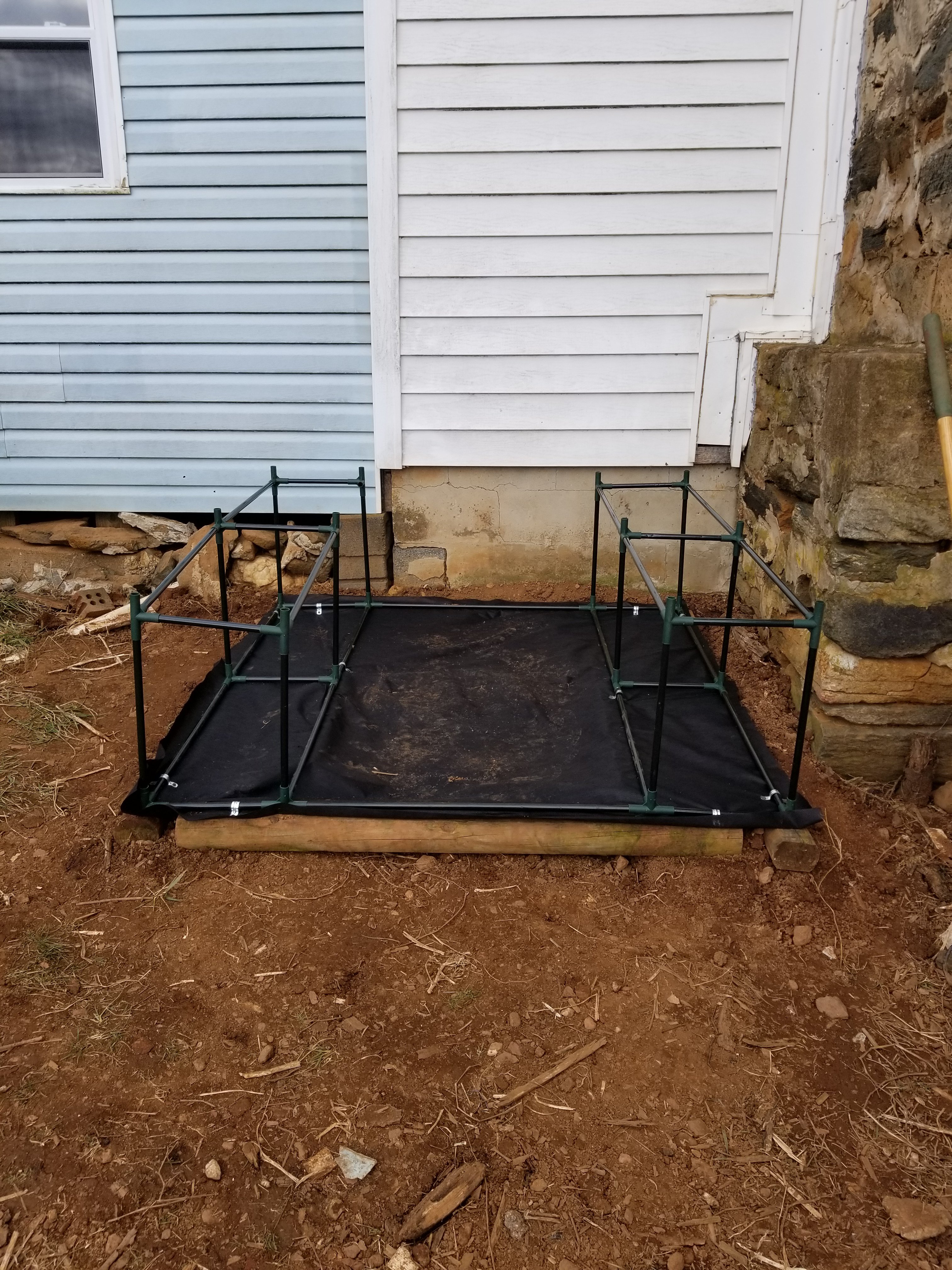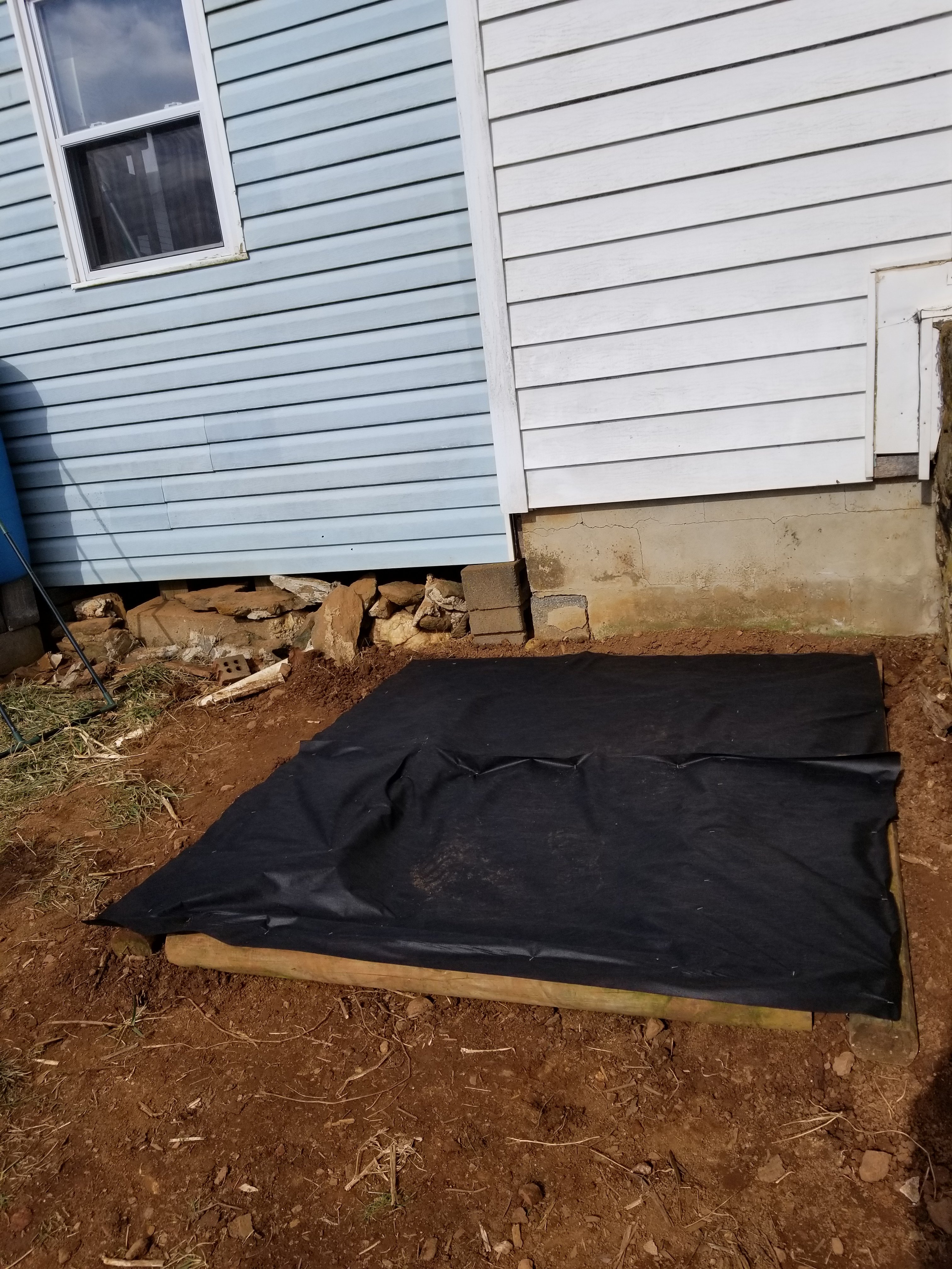 There is landscape timber under the weed cloth but I missed getting a picture of it.