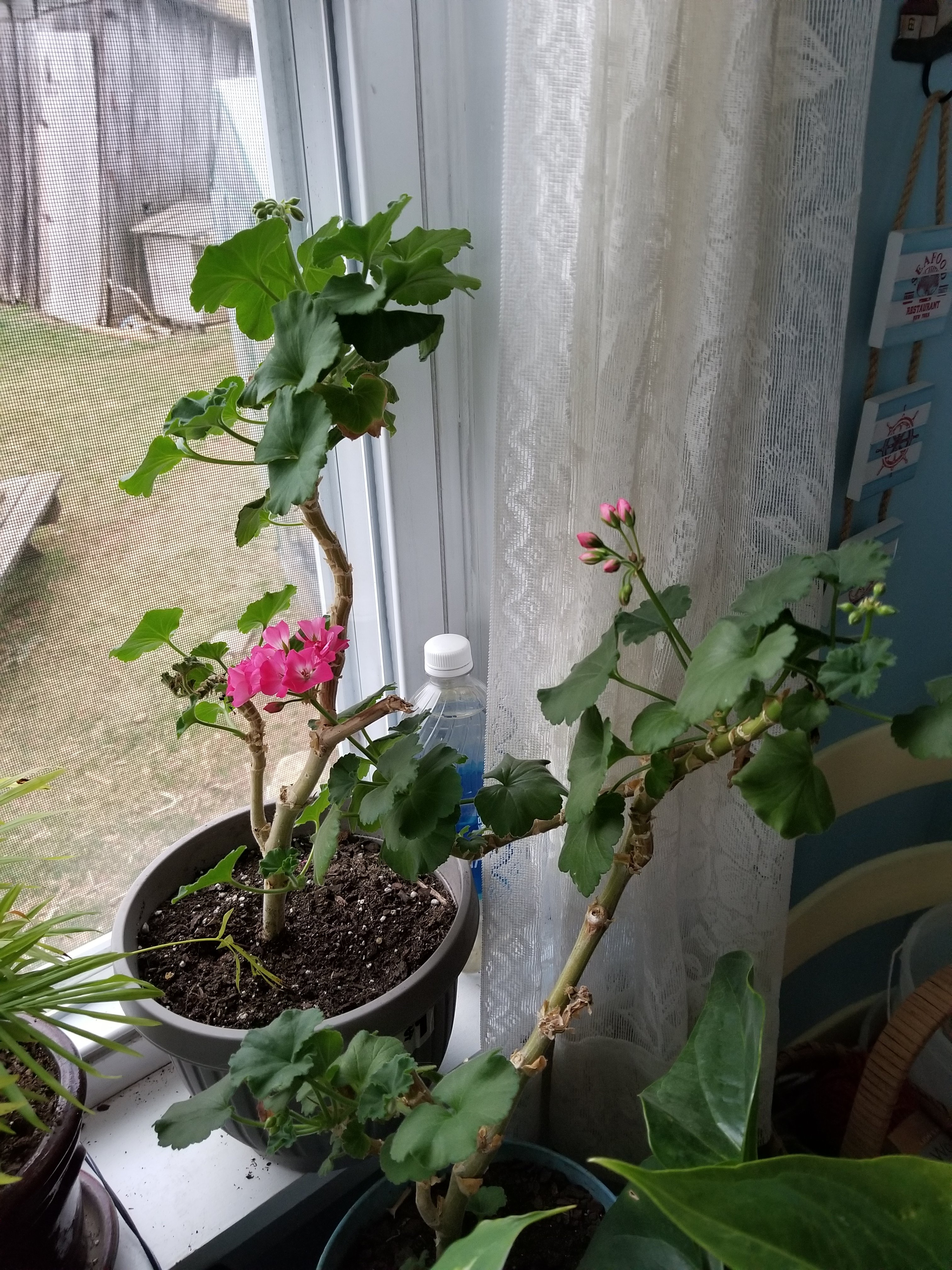 I have geraniums blooming. I think they are so pretty. God is good to give us flowers blooming in February.