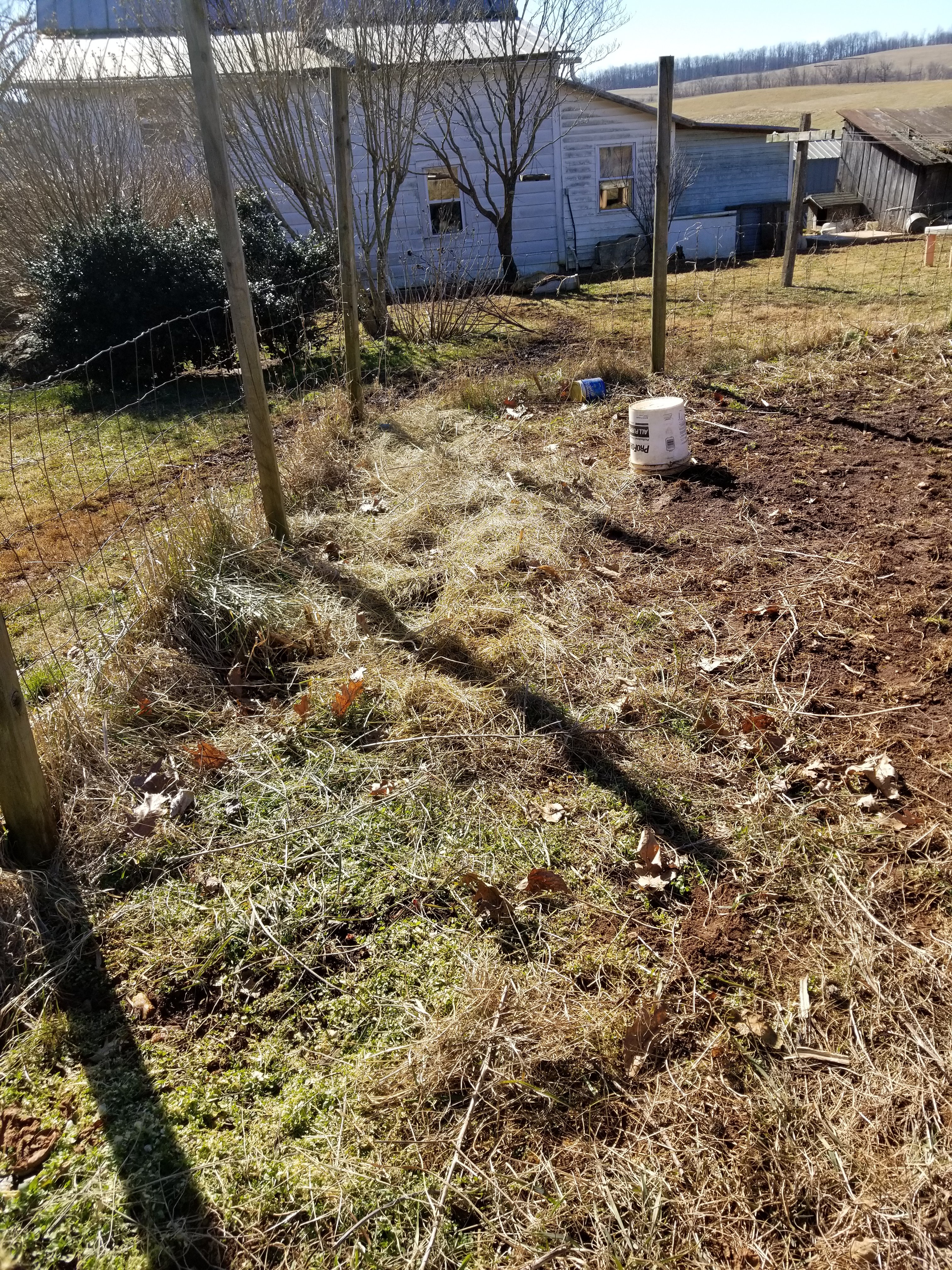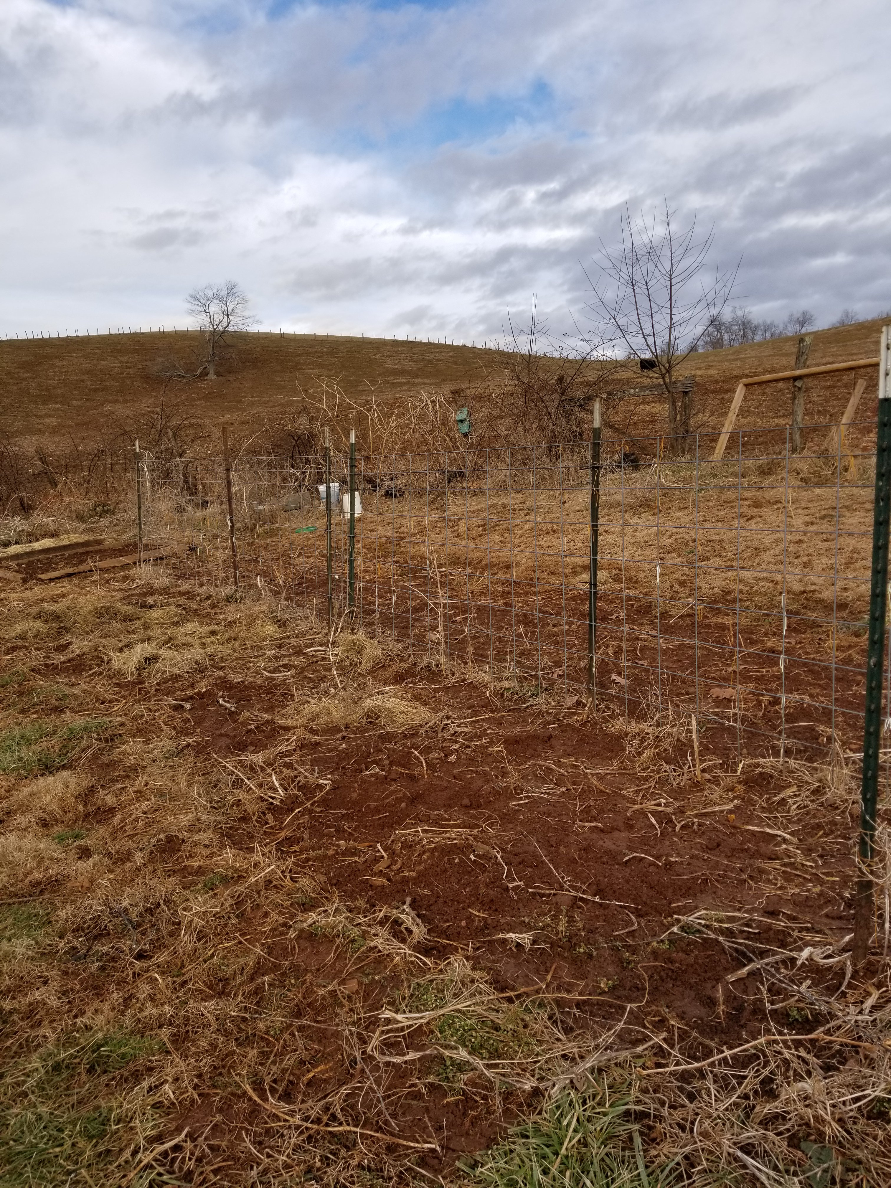 So while Richard was tilling I cut down the grapevine that was here. It hasn’t produced edible grapes in years so it was time for it to go. The trellis was in bad need of repair so I took it down too. Dave and I hope to build a new one soon.