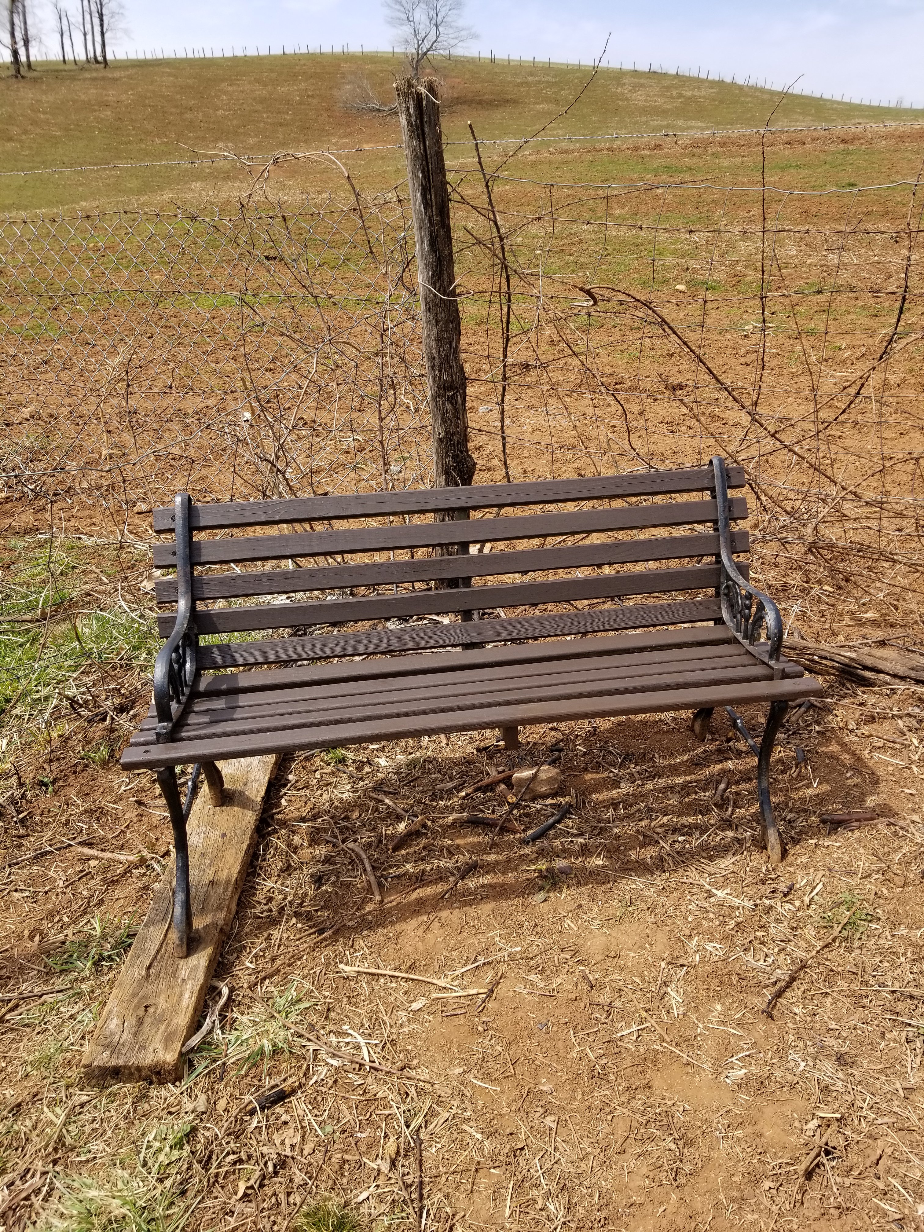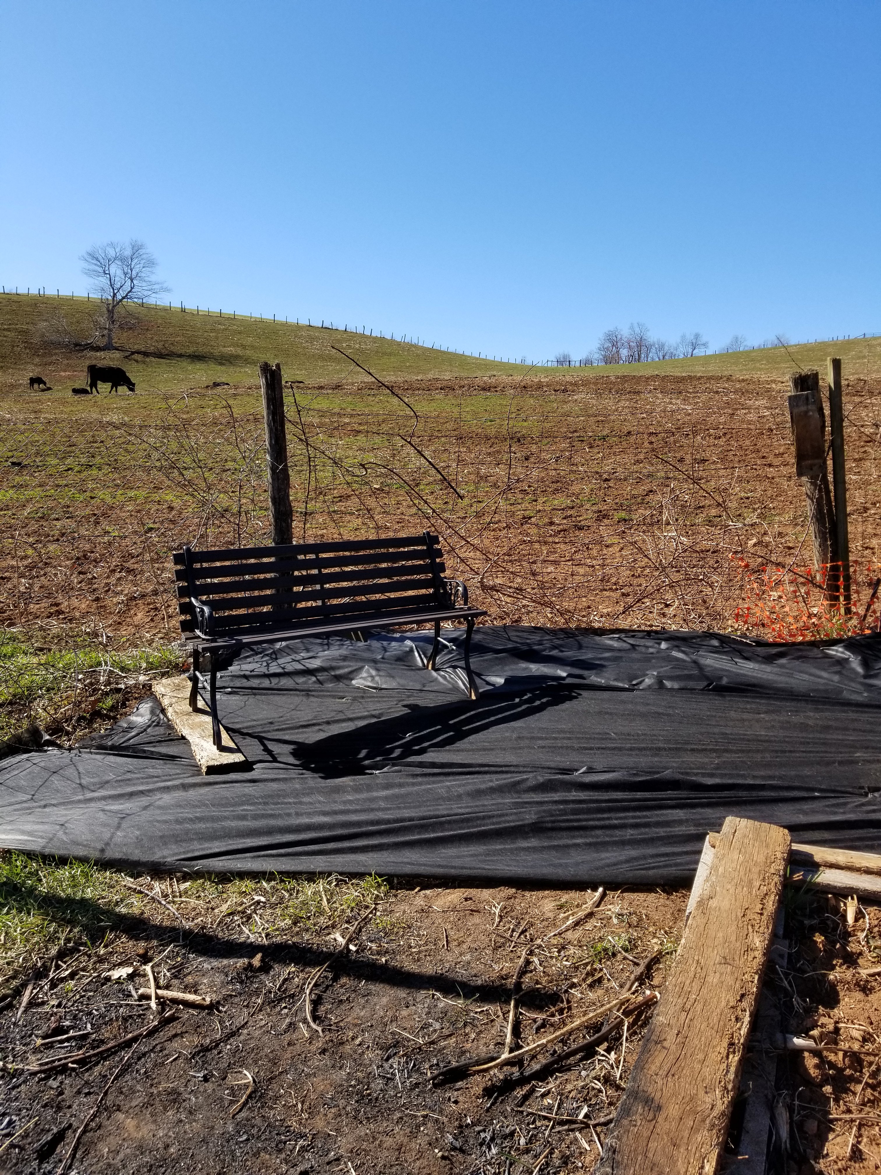 I took the bench that was under it and moved it to the upper left corner of the garden. I plan to put landscape fabric down and then mulch. This will hopefully keep the weeds and the grass from taking over.