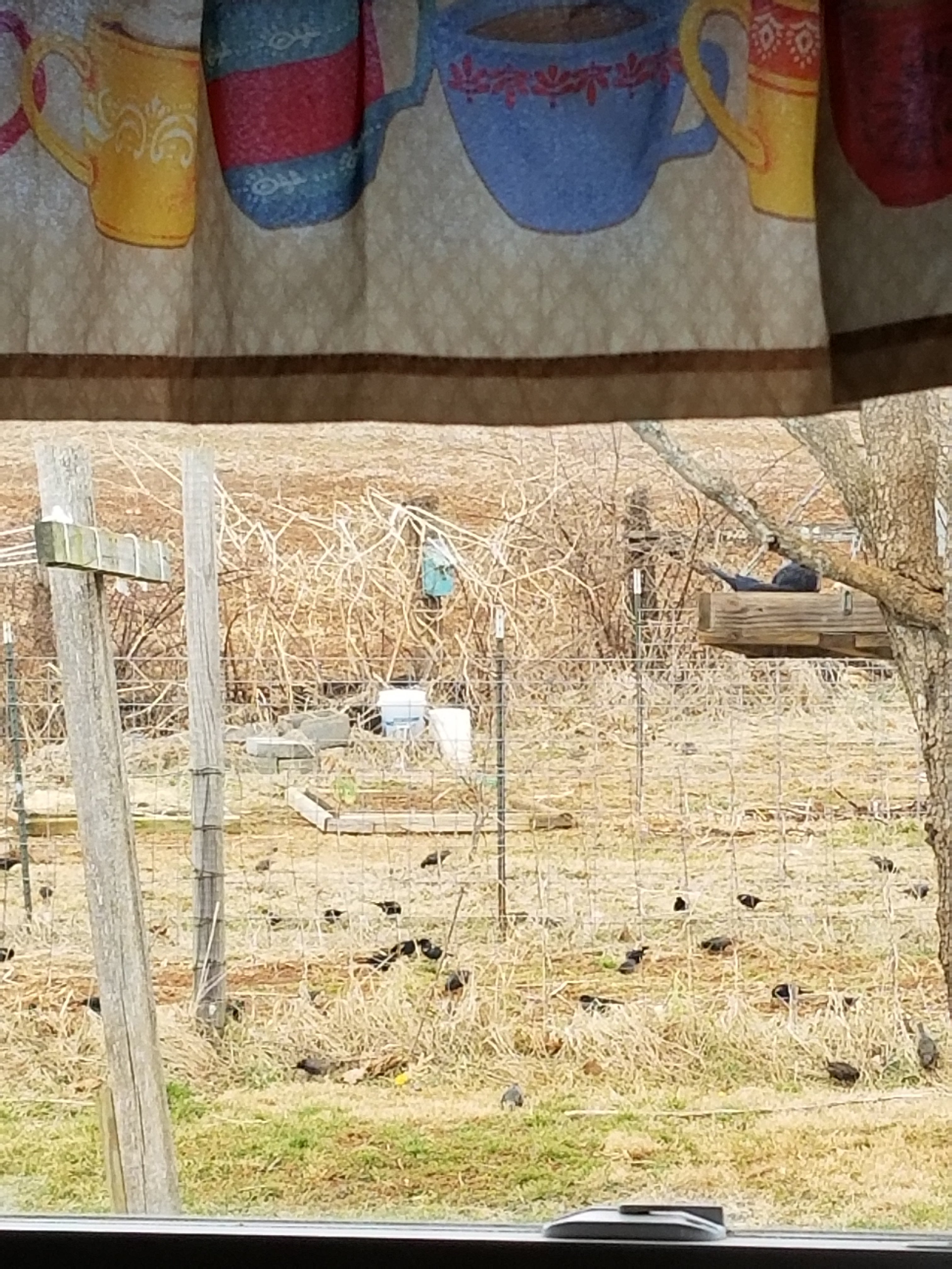 Also the red winged blackbirds have returned. Look at all of them. They are our first spring birds. They come every spring to our feeder and spend the day.