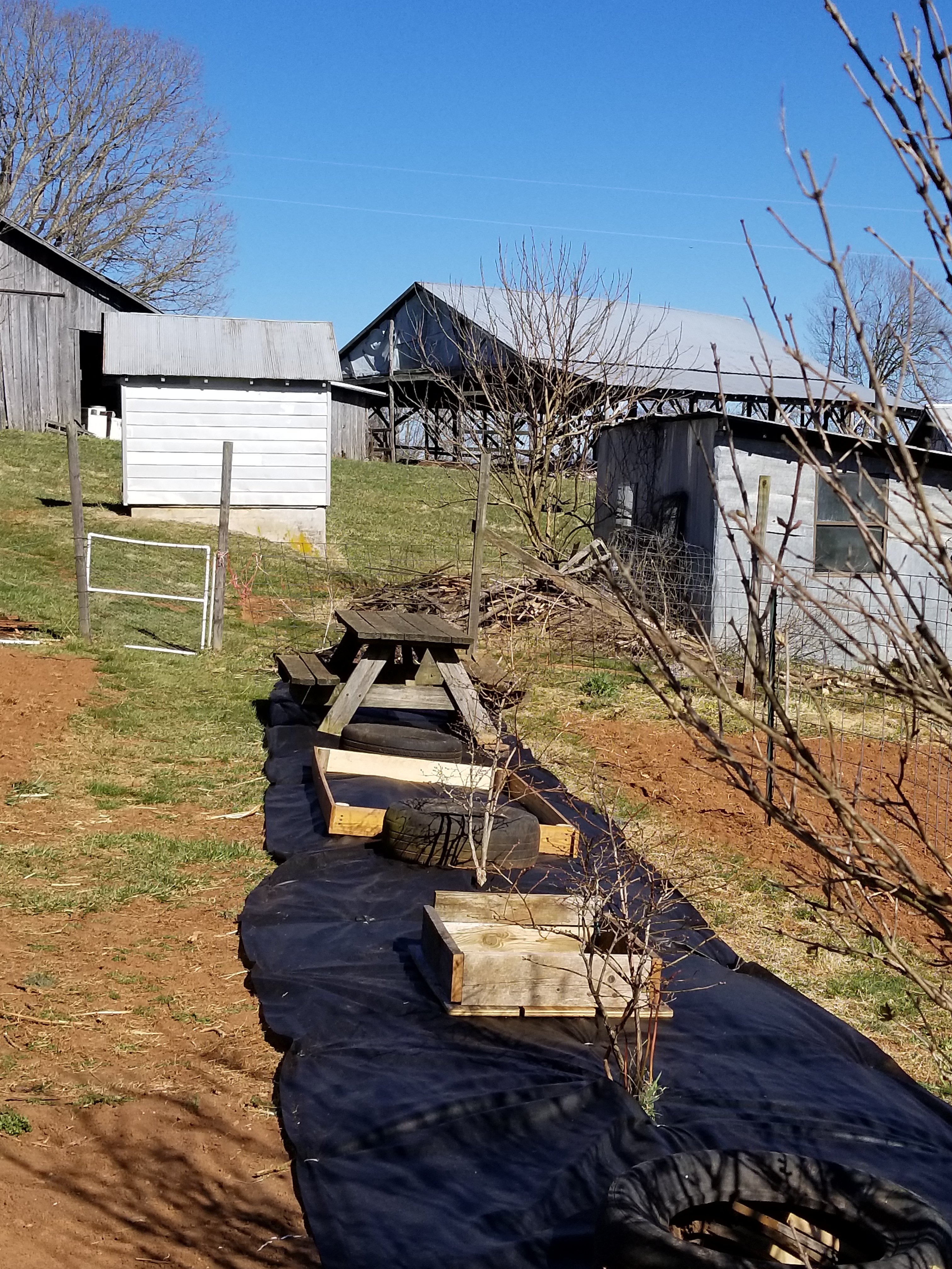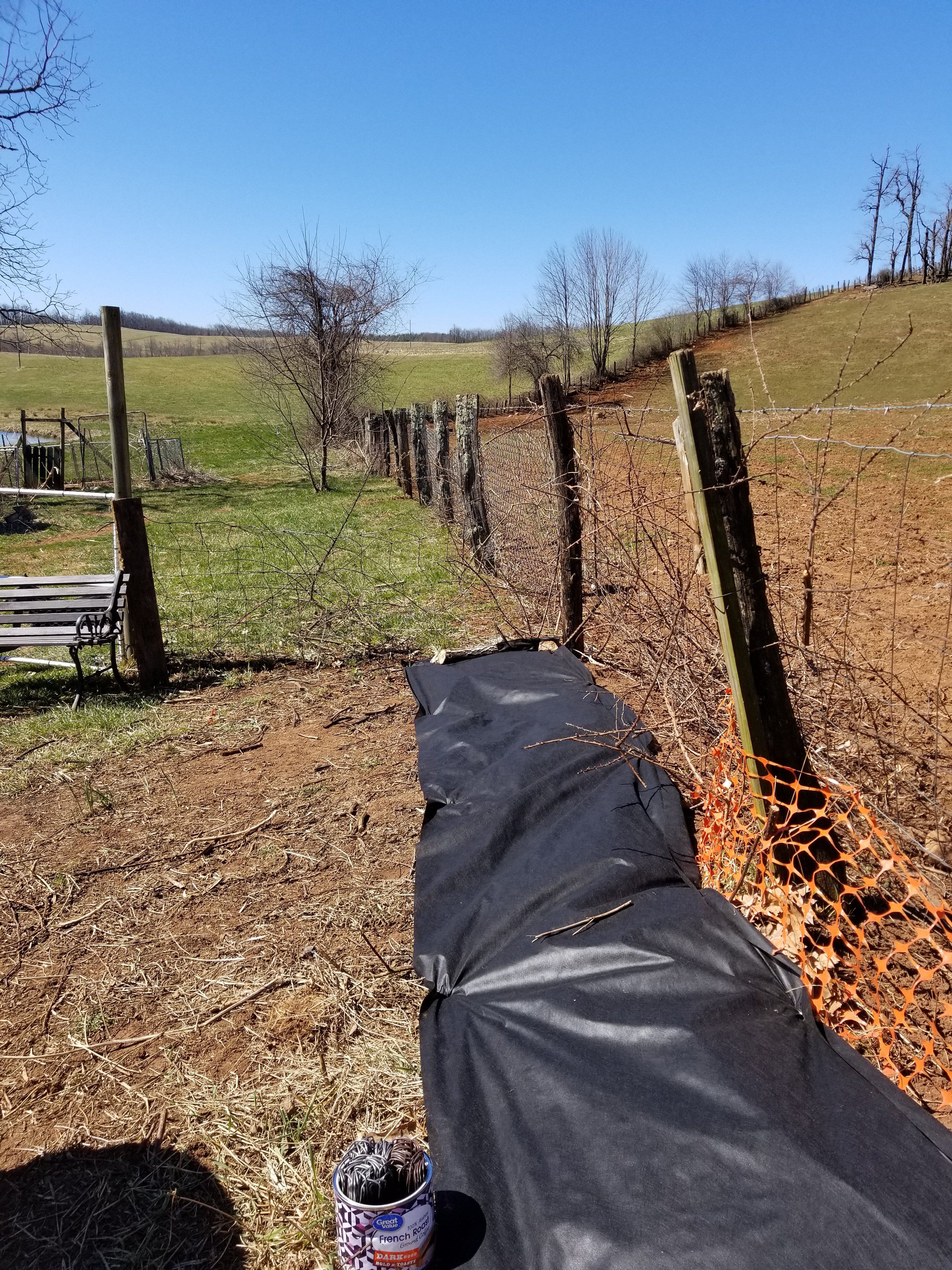 Dave came over yesterday and helped me put down some of the weed barrier in the garden.