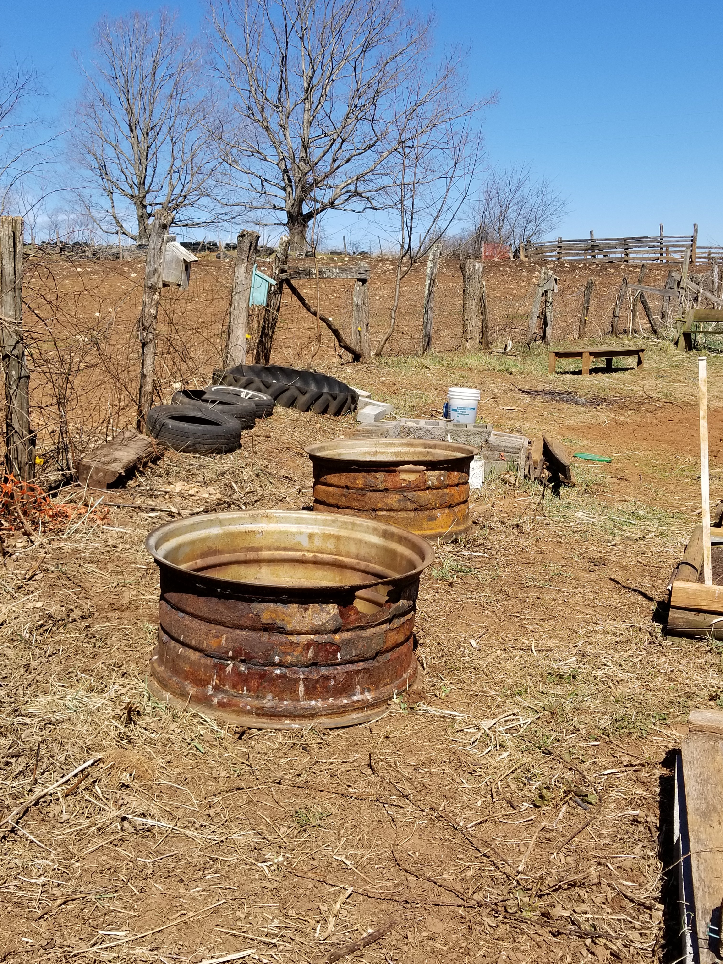 Put these tractor rims in. These were given to me. They will make great raised beds.