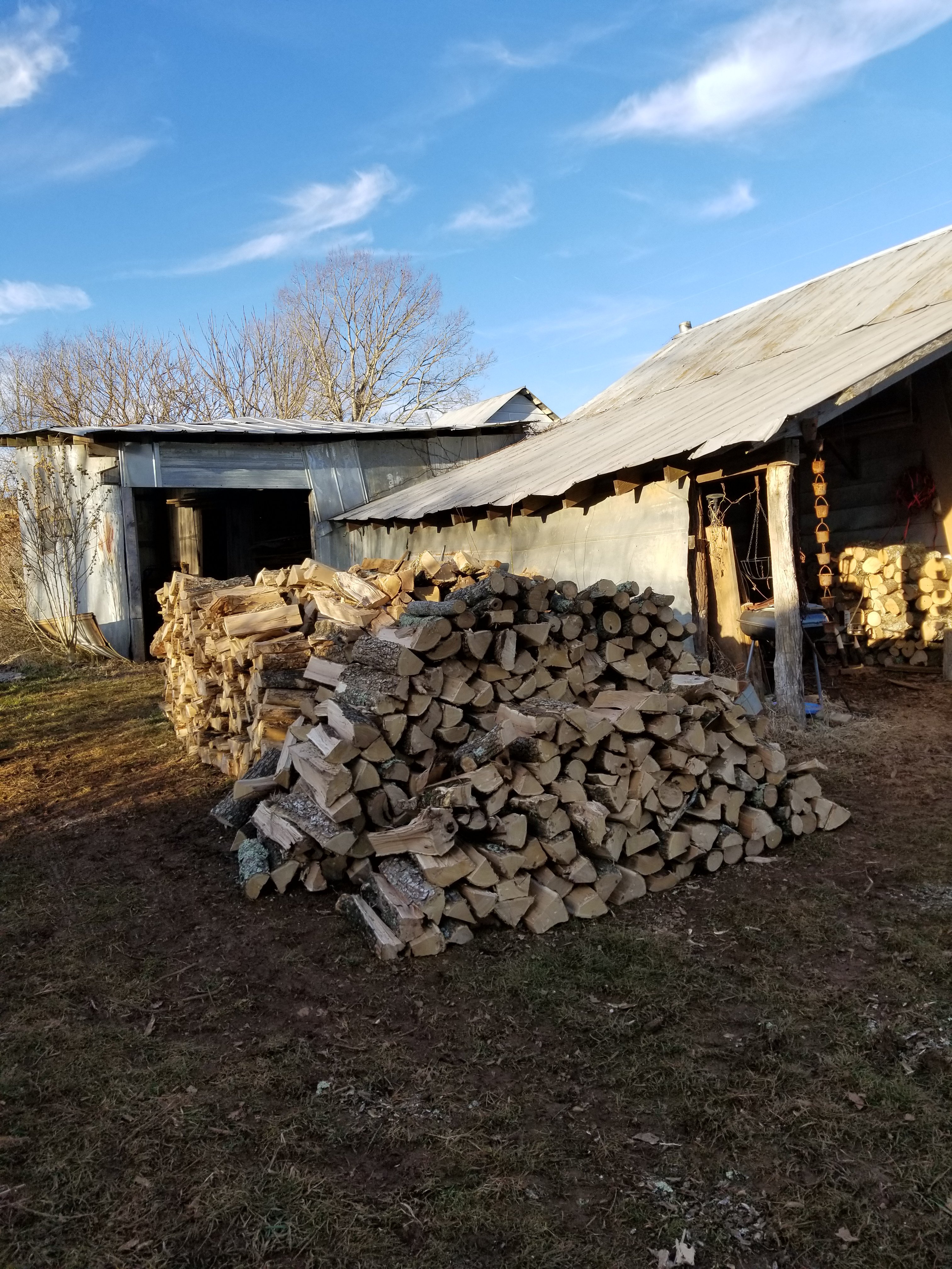 Our friend Richard came with his wood splitter and the remainder of the day was spent working on the wood. The big catawba tree is finished and about half of the willow is done. YAY!