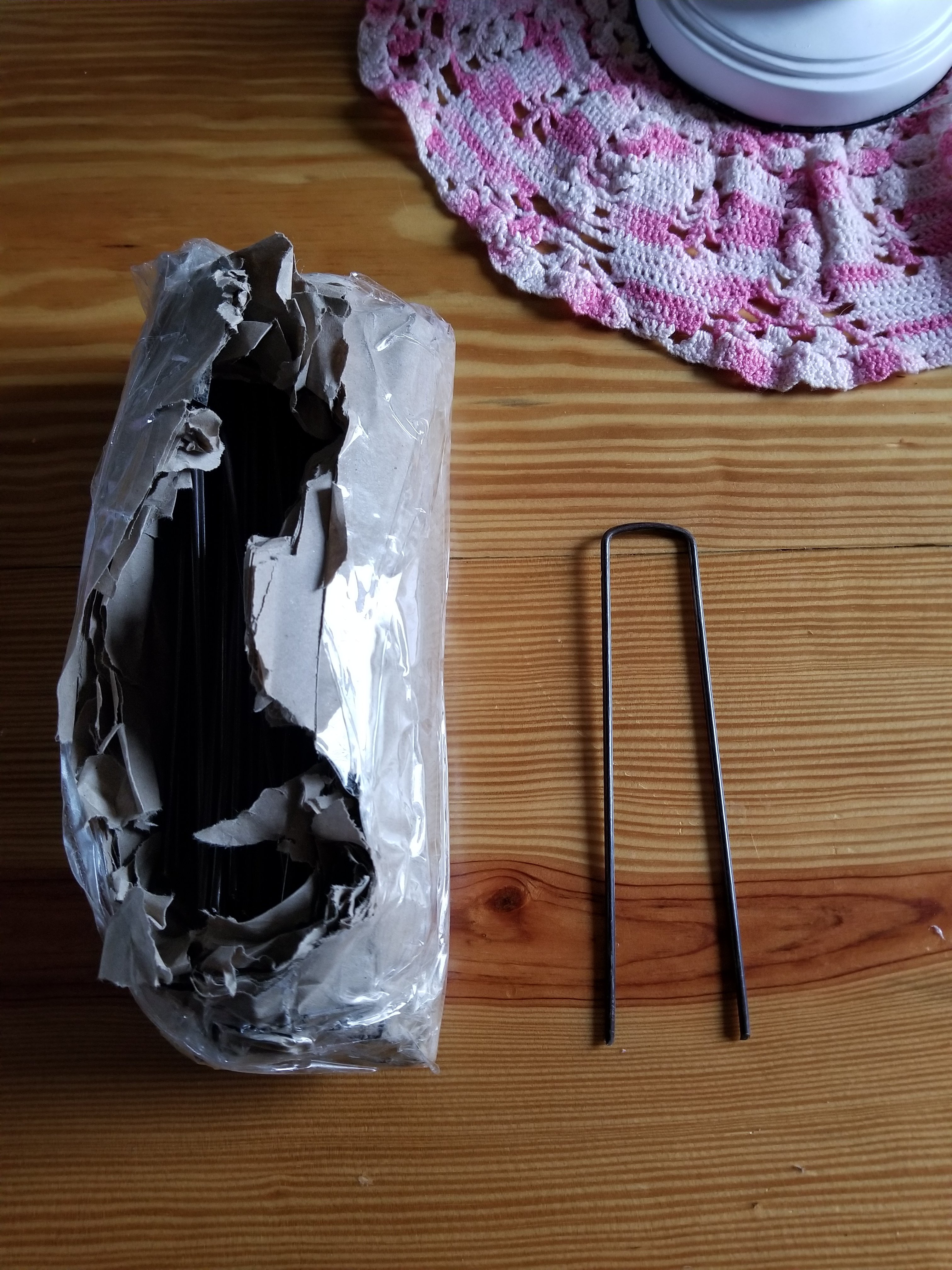 Also another new thing. I am hoping to use weed cover in the garden this year. Less work hopefully. I got these staples to hold the fabric down. We have high wind here so I hope this will work.