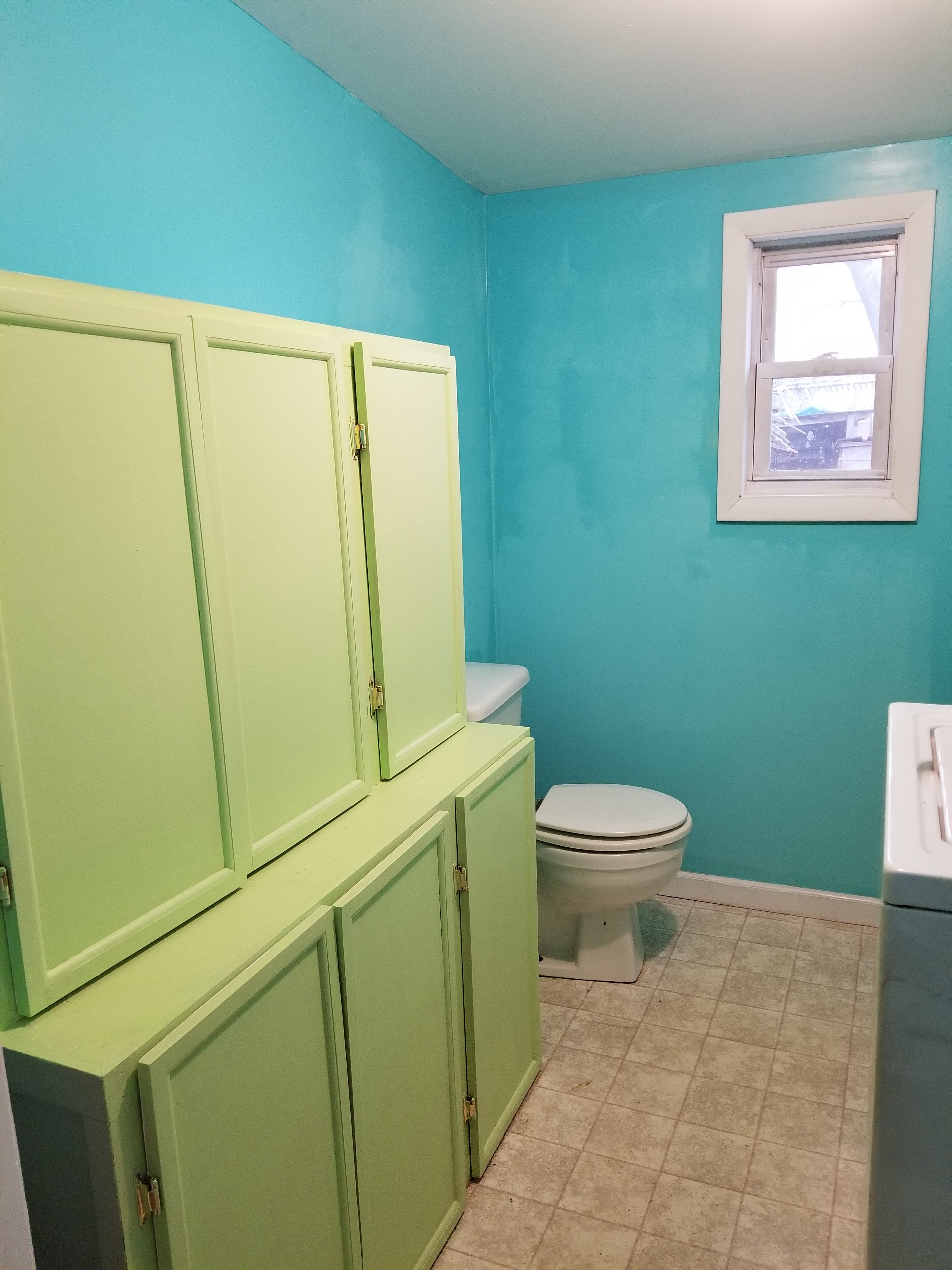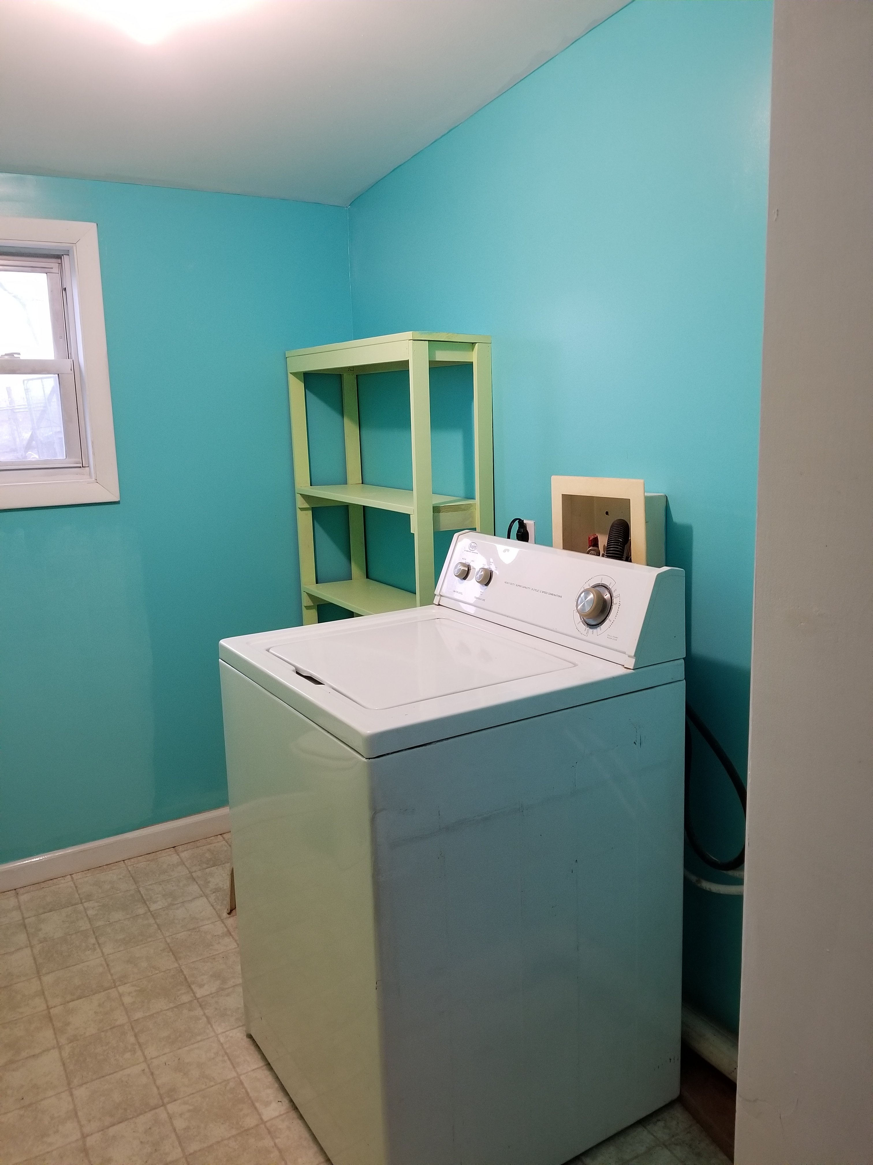 The blue color was a miss matched paint from home depot and the green is called sea mist.