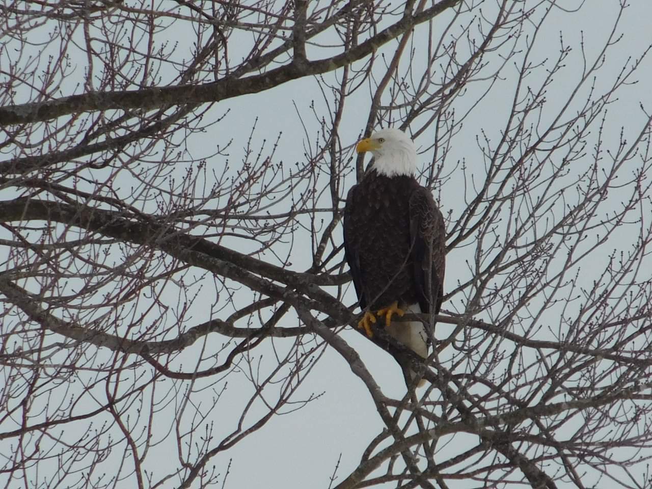 Grace took this picture of the eagle the other day. He was sitting in the tree at the top of the driveway. We think he is so beautiful!