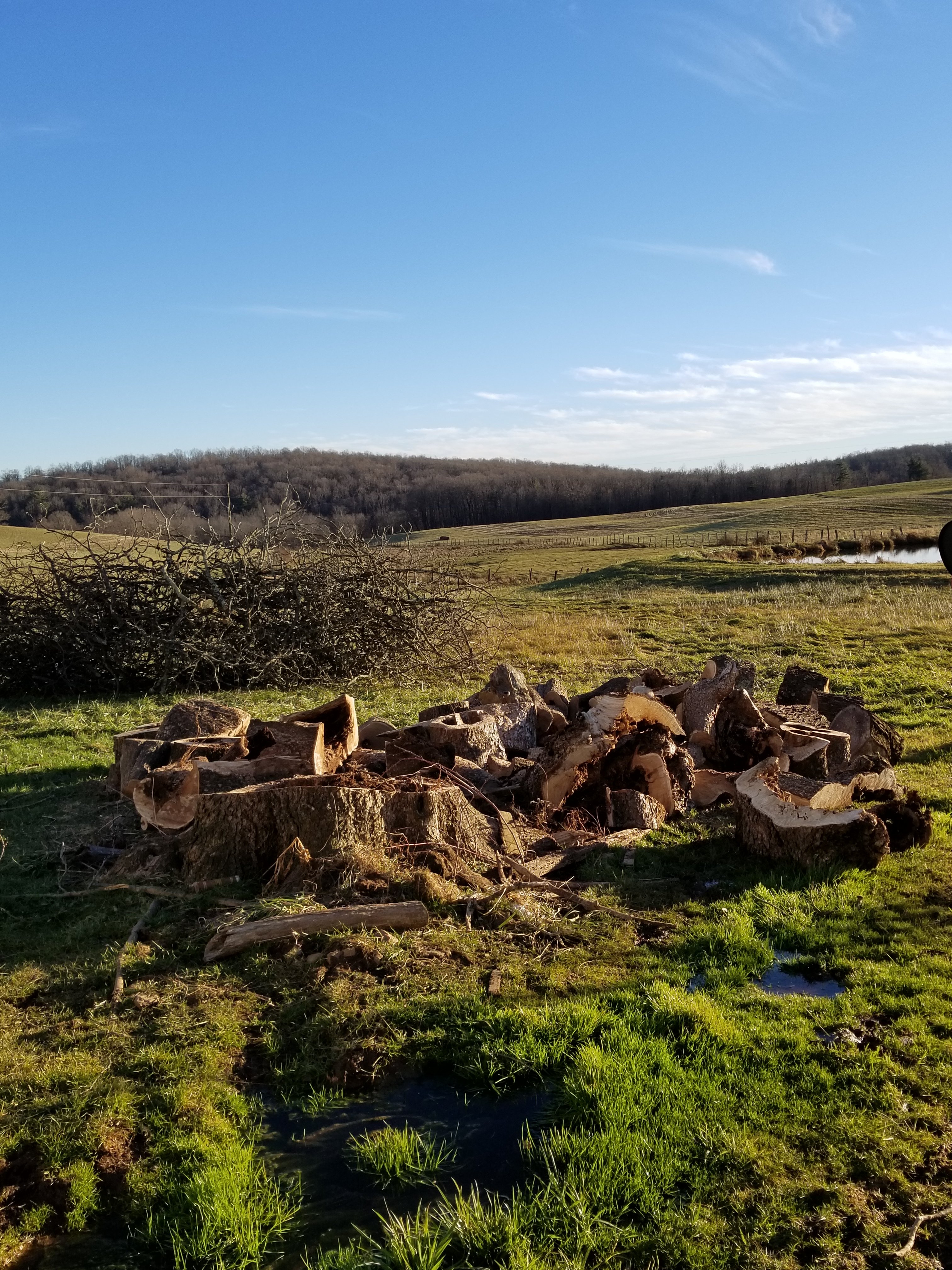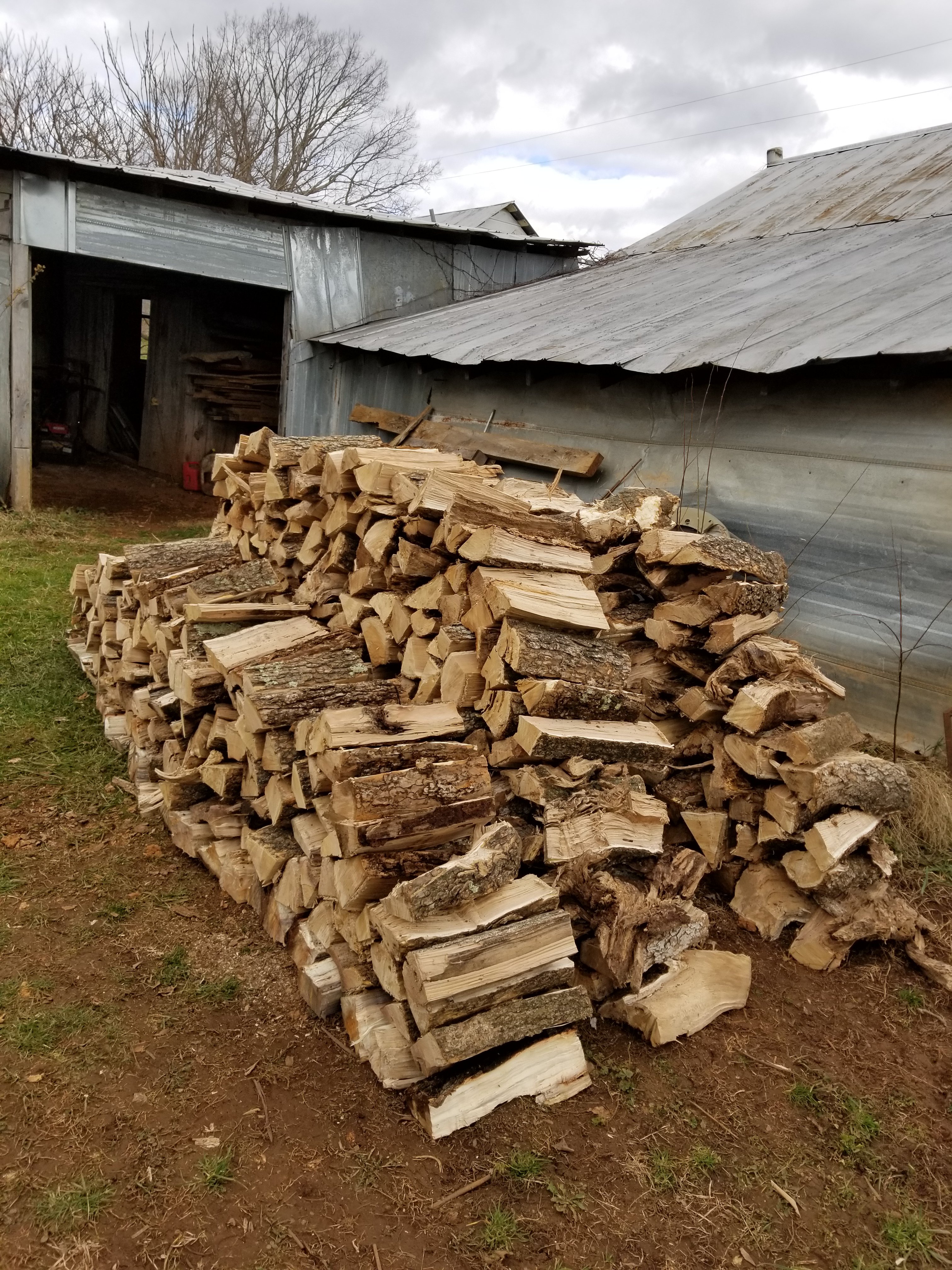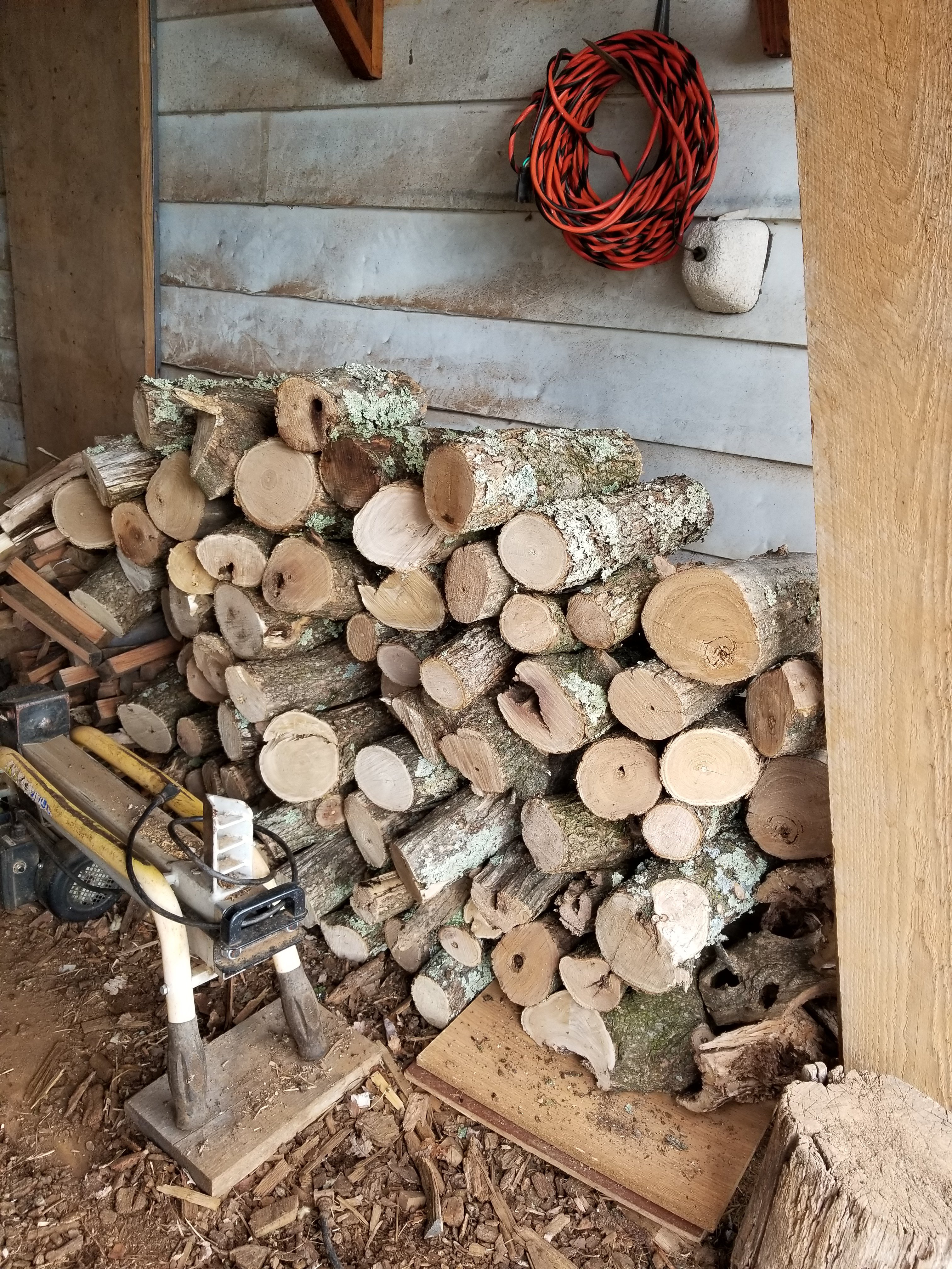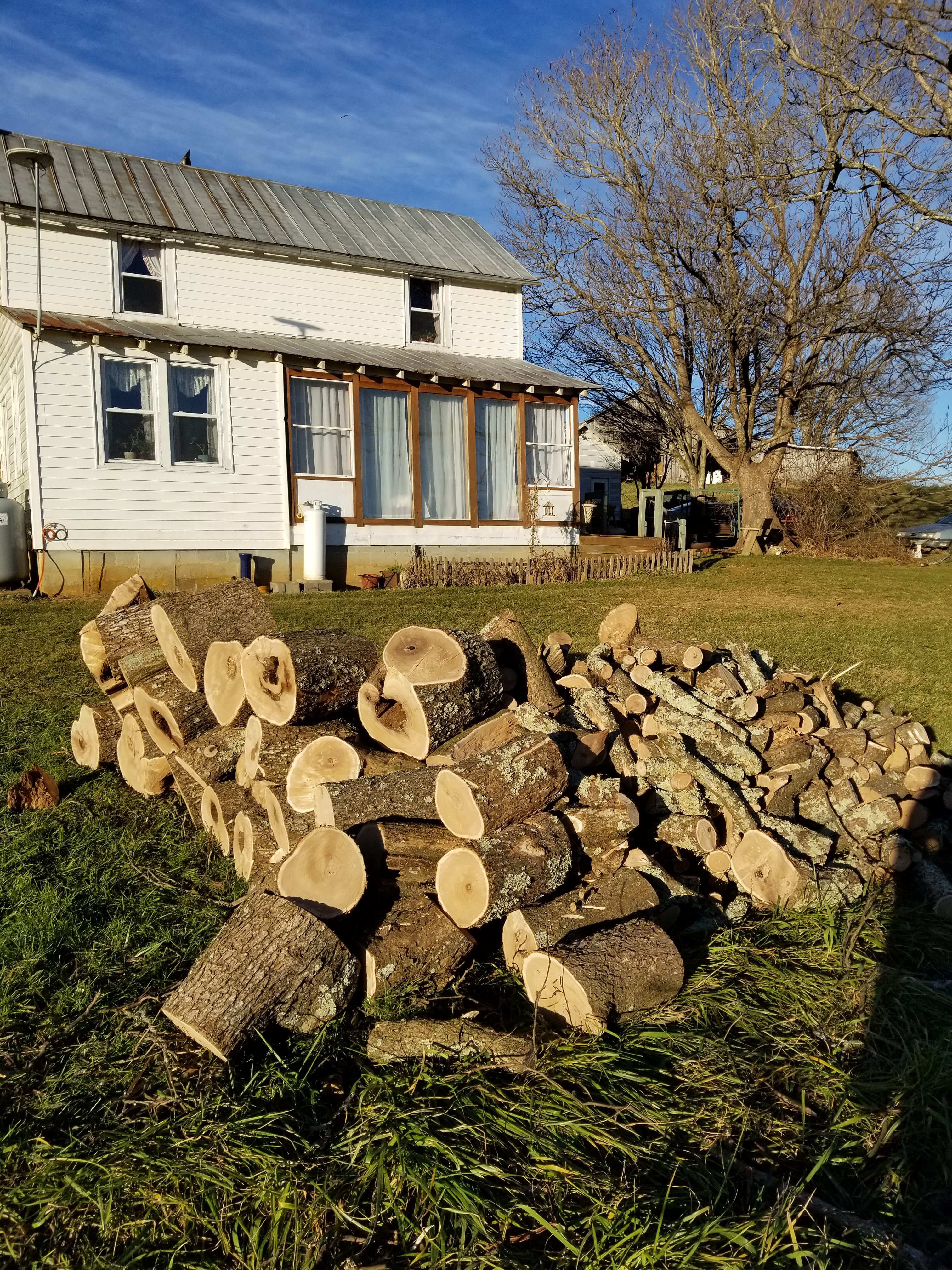 Grace brought all the smaller pieces in the wood shed. We can split these ourselves with our little splitter.